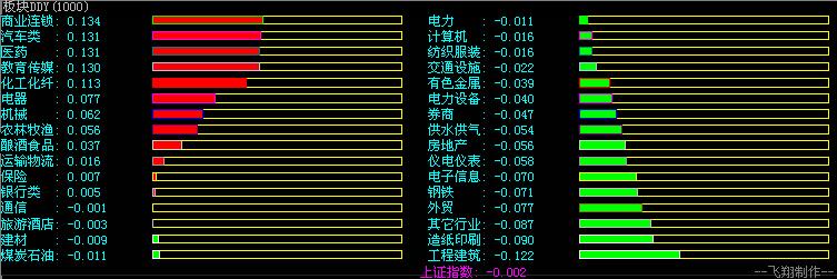 翔飞的数据统计指标--板块篇(五) 阅读 作者:公式网时间 2009-11-14 14:20:20 大智慧公式 这篇帖子中的加工数据是DZH的DDY,DDY-单数差和DDX-大单的关系差不多。。。 呵呵,我听过DZH对许多用户的解释是:问:DDX一直红柱,可股价为啥还一直跌啊???答:你们还要同时参考DDY啊; 问:那也有DDX和DDY同时红柱而股价下跌的啊??答:这,这,指标不是万能的,股市有风险啊。。。 哈哈,纯粹娱乐而已。。。 还是那样,本人不去研究这些深奥的原理,只对数据进行组装拼凑,坛友们自己看清楚了。。。 指标加密不限时,喜欢的下着玩玩,不喜欢的一笑而过。。。 ①当日板块DDY(日线、L2) 查看完整内容【开通VIP会员】 VIP会员数十万个公式随便用