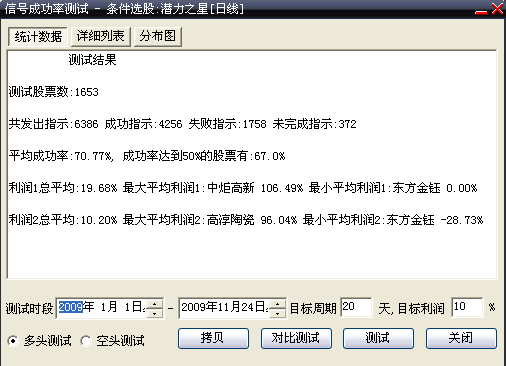大智慧机构版新指标--->潜力之星 阅读 作者:公式网时间 2009-11-25 07:38:04 大智慧公式 这两天大智慧机构版用户又收到新指标 潜力之星,现在发上来供大家研究学习下哈 另附两张测试图 第一张:多头测试 第二张:空头测试 查看完整内容【开通VIP会员】 VIP会员数十万个公式随便用