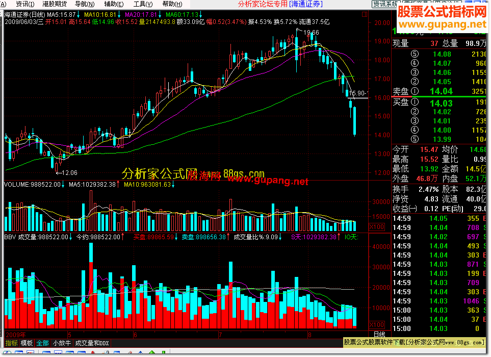 - 卖盘:-IF(CLOSE>OPEN,0-VAR1*((HIGH-CLOSE)+(OPEN-LOW)),IF(CLOSE