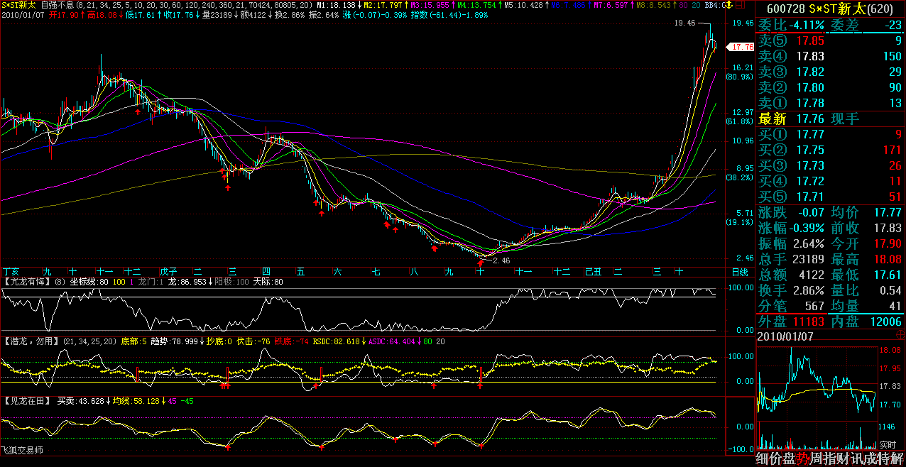 - DRAWTEXTEX(趋势<底部,1,500,900,'勿用乃用,是小心谨慎,无不利。')colorred;