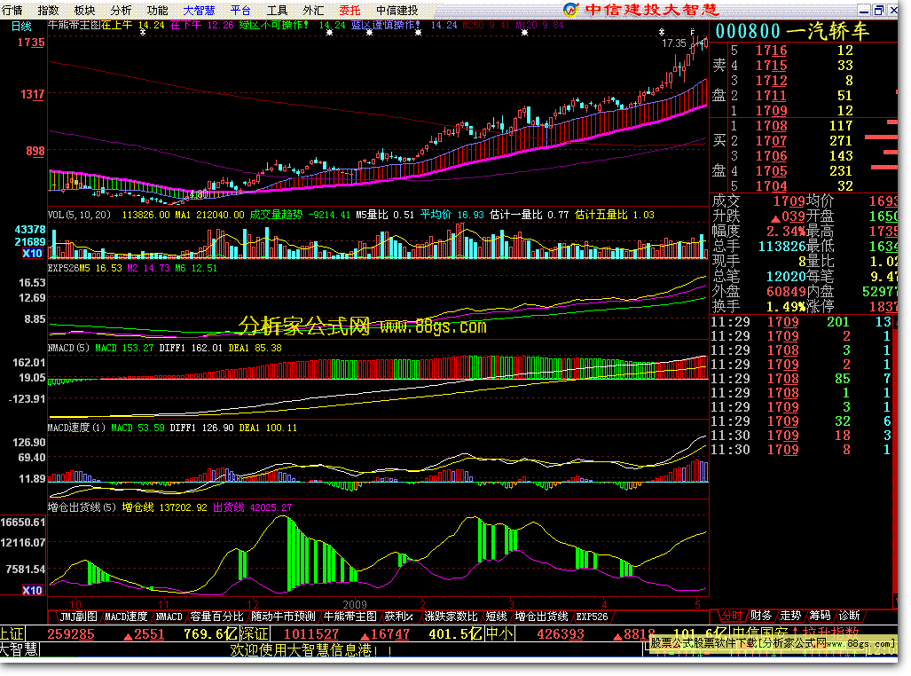 增仓出货线 阅读 作者:公式网时间 2009-09-02 21:29:30 大智慧公式 DZH经典公式,适合任何股票及指数使用,下载: lxg3428公式 没有绿线且增仓线向上时才是介入的好时机,没绿线时也是涨的,但速度会慢些。 1.黄线在紫线上运行,多方占优势,反之亦然; 2.黄线上升,增仓; 3.紫线上升,减仓; 4.同时上升或下降,增减同时存在,要看(1)判断是多方还是空方占优; 5.绿线出现是抛压比较重,有下跌的风险,要结合其它价格指标严密监视价格趋势的动向,设好止损计划(比如五日均线跌破二十日均线就止损或止盈,要根据自己的操作风格决定,短线跟长线的操作是不一样的). 查看完整内容【开通VIP会员】 VIP会员数十万个公式随便用