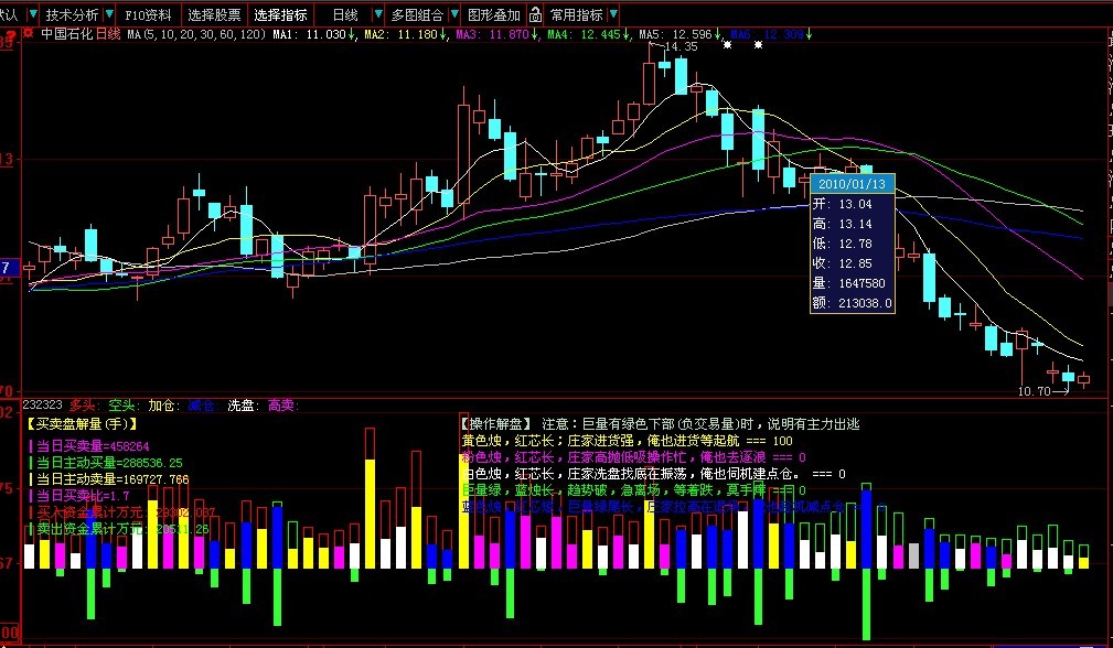 - DRAWTEXTABS(395,5,'【操作解盘】 注意:巨量有绿色下部(负交易量)时,说明有主力出逃');
