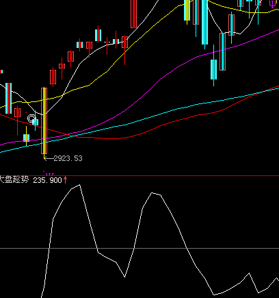 2009年4月9日。10日。13日连续大涨160点。大盘未来趋势线在4月14日开始掉头向下,之后的第6个交易日即——4.22开始暴跌!虽然4.15-4.21大盘一直在缓慢上涨,但是它已经提示短期或者中期顶部已经形成啦。由此可见,“立阳大盘未来趋势线”指标,可以提前3-7个交易日提示大盘走势。以后在高位如果出现LYWLQSX开始掉头向下的现象,大盘虽然可能还在继续上涨,但是在2-4个交易日内必须开始逢高减仓,并争取清仓来回避大盘调整的风险;相反如果在底部出现LYWLQSX开始掉头向上的现象,大盘虽然可能还在继续下跌,但是在3-5个交易日后就可以逢低布局自己看好的股票了。