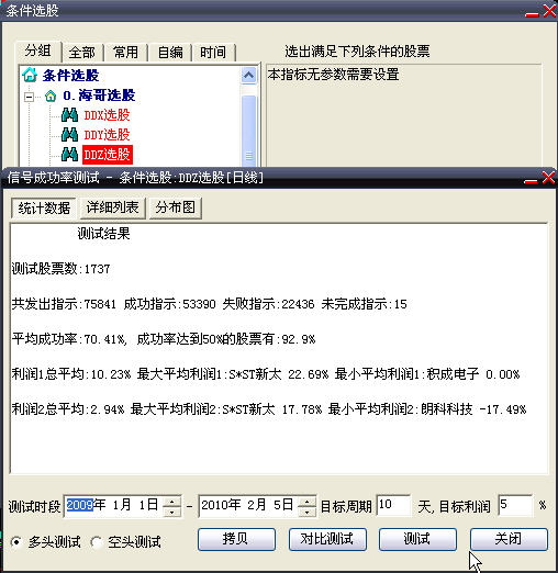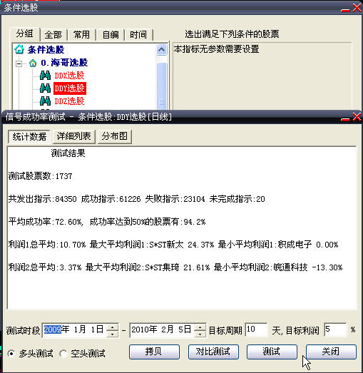 用大智慧的DDX、DDY和DDZ设计选股条件短线成功率高达70%以上 阅读 作者:公式网时间 2010-02-26 07:34:12 大智慧公式 大智慧的DDE决策系统有很多人对它都很迷惑,现用DDX、DDY和DDZ设计选股条件,测试10天获利5%短线成功率高达70%以上: 由于成功率还不算非常高,所以发上的条件选股公式进行了加密,有效期为2010年12月31日 查看完整内容【开通VIP会员】 VIP会员数十万个公式随便用