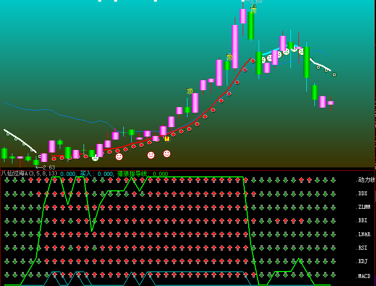 4.全绿箭头,空仓,出现四红箭头积极买入,全红箭头守仓,出现四个绿箭头时间,逢高卖出;