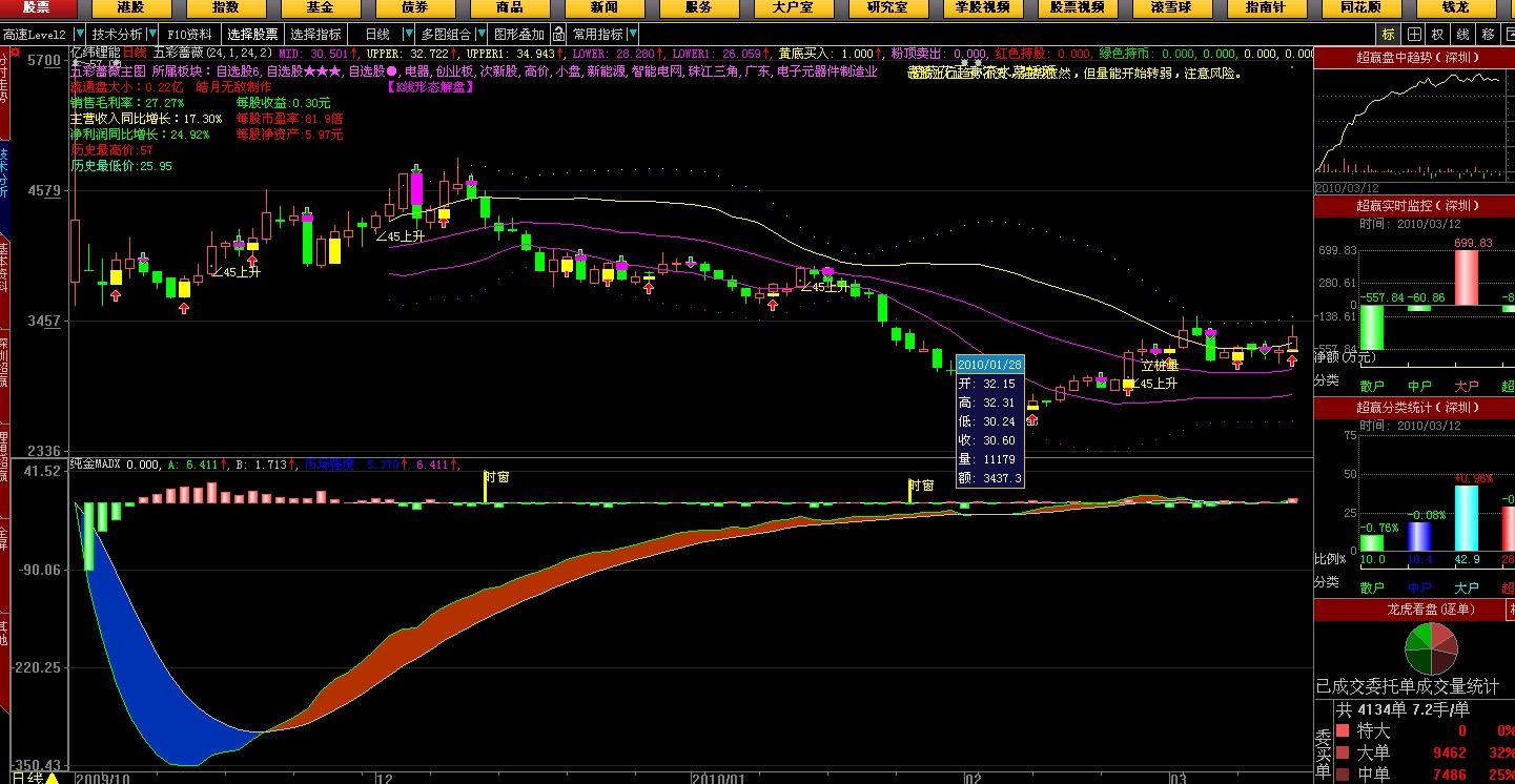 如果真的要对DDX做个改造,我想可以这么去考虑,在假设DDX有效的情况下,如果DDX连续翻绿并扩大,个股的抛售压力很大,反过来说,如果连续翻红并扩大,市场追涨气氛浓郁,如果翻绿但是不断的缩小,那么该股的承接力度加强,或者说抛售压力开始减少,那么我们可以引入MACD的算法,如果在短周期中DDX的均值大于长周期的均值,可以理解成有资金吸纳,然后将这个吸纳的均值再平均化,可以滤掉不少杂波,将这两个均值的差值看出市场强弱的力度,但是我们需要的不止是这个,我们还要知道这个力度是趋强还是趋弱,那么我们将两日的力度相减,得到一个数值,如果数值为正,则代表了短周期趋强且大于周期均值且连续增强,那就是一个相对可靠的研判指标了。
