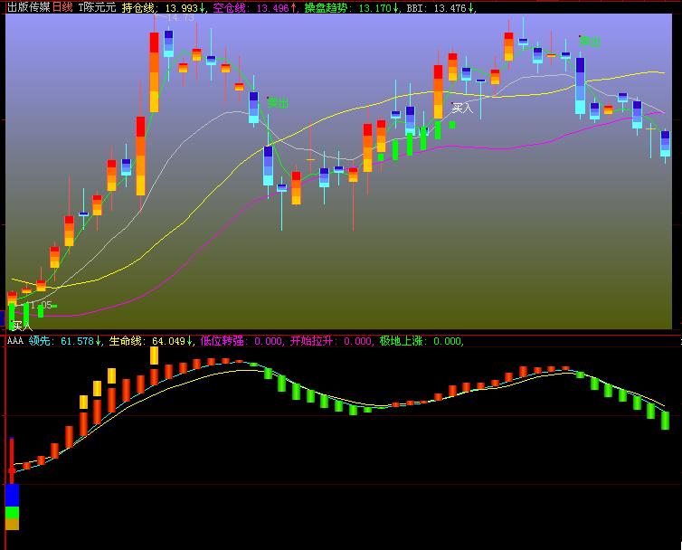 - 极地上涨:IF(A6,领先,0),COLORGREEN,LINETHICK2;
