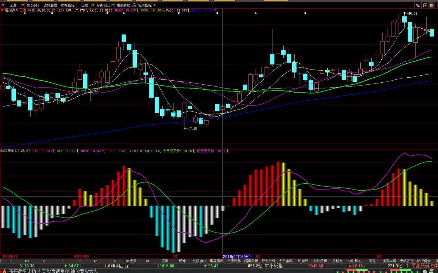 '今日死叉价位预测: '+NUMTOSTRN(今日交叉价,2)),ALIGN2,ColorBLUE; - DRAWFLAGTEXT(DEA>DIFF AND MACD>REF(MACD,1),DIFF,'今日金叉价位预测: '+NUMTOSTRN(今日交叉价,2)),ALIGN2,ColorRED;