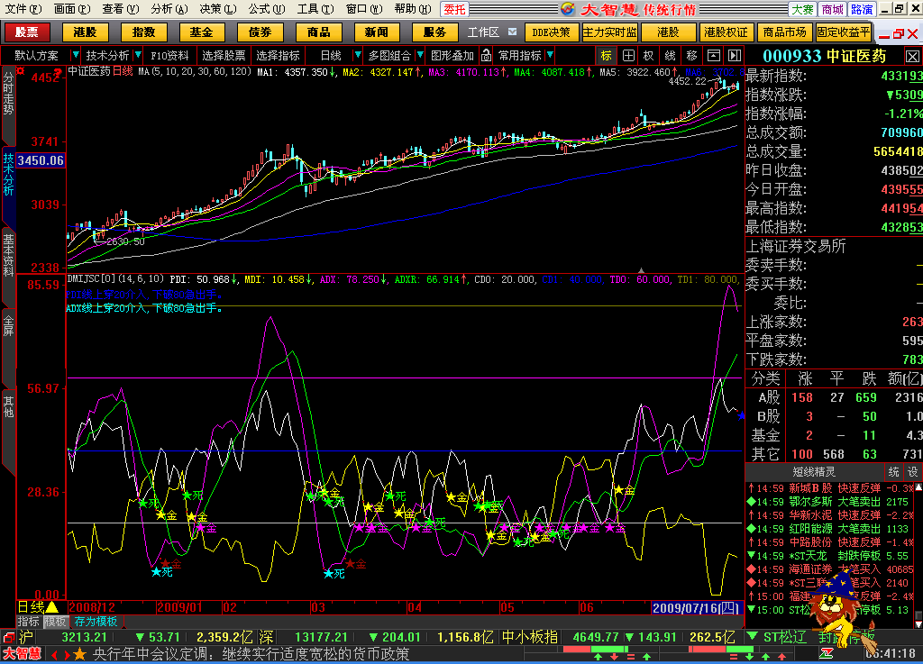 DMI金死叉[大智慧L2指标]判别市场的趋势.自用指标
