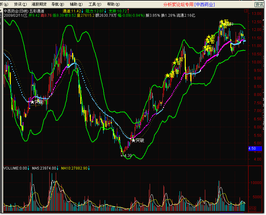 - 突破:DRAWTEXT(VarE<15 AND CROSS(Var55,通道),LOW,'★突破'), colorwhite;