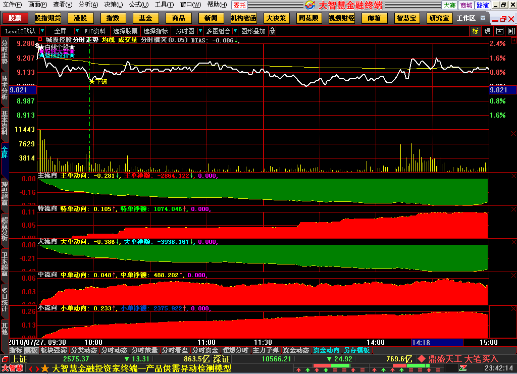 主单净额:("DDEDATA@BIGORDERSCALE"(1,2)-"DDEDATA@BIGORDERSCALE"(2,2))*SUM(AMOUNT,0)/10000,linethick0,Color0000FF;