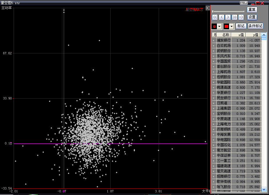 我这两天,认真在学大智慧的星空图。手痒了,也编了个最袖珍的指标,代进星空图里。效果如何待大家用了再评价。