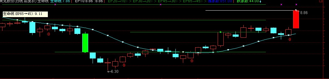 生命线:SMA(SMA((EMA(日均价,ABS(5- XAM1))),3,1),3,1),COLORCYAN;