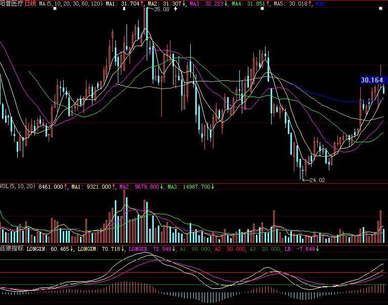当价格在相对低位形成底部向上交叉上穿底部线20的时候,意味着行情阶段性底部形成,有可能出现一波新的上涨