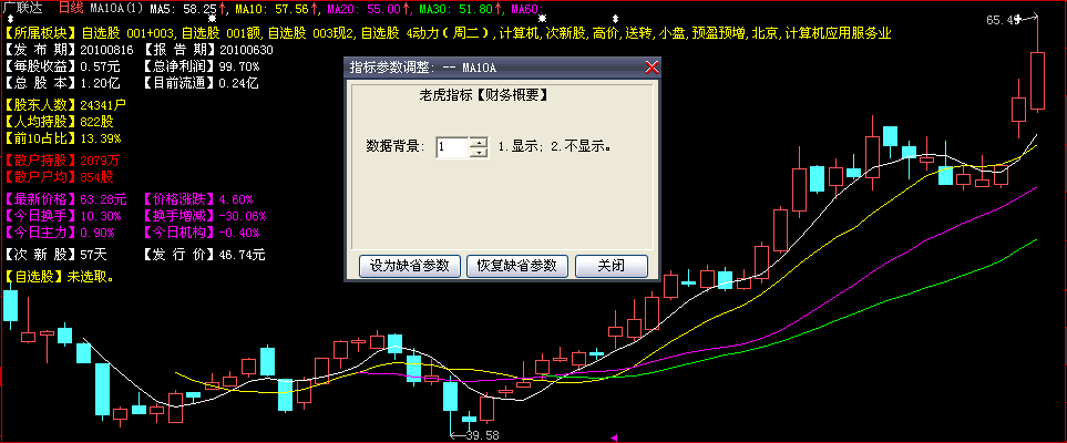 财务概要公式及排序模板下载 阅读 作者:公式网时间 2010-08-18 06:58:57 大智慧公式 压缩包中: 1.【老虎财务概要】.FNC,包含1个主图公式、1个排序公式,下载后引入。 2.《11财务概要.xml》是模板,请放在X:\dzh2\userdata\Self目录下面。 特别说明:应一品龙椅朋友的要求,增加【次新股】提示 查看完整内容【开通VIP会员】 VIP会员数十万个公式随便用