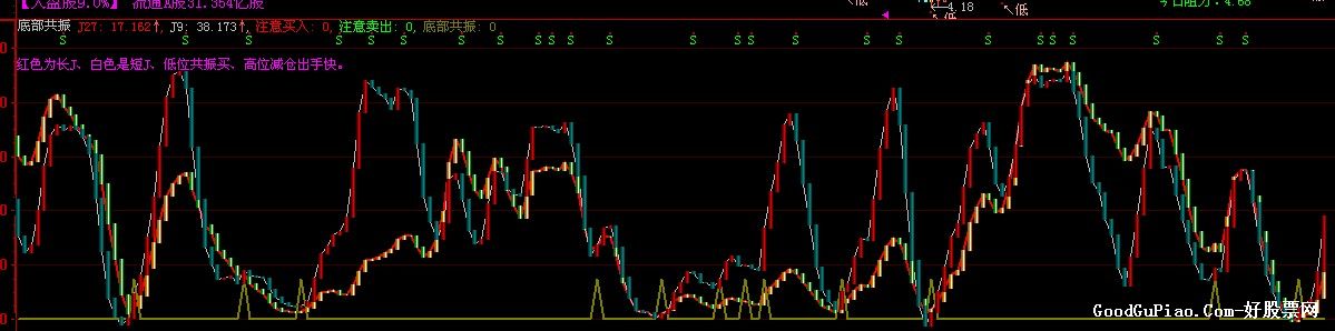 DRAWTEXTREL(1,80,'红色为长J、白色是短J、低位共振买、高位减仓出手快。'),COLORMAGENTA;