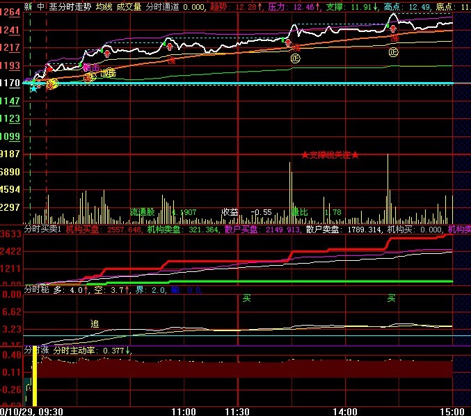 自从大家知道严一松的那套公式只能使用一天,大家纷纷贴出了那几个公式的替代公式,当然也许严一松也有自己说不出的苦衷,我想大家也应该可以理解,毕竟人家给了我们一个很好的思路,这点还是应该表示感谢的。我也只是把我的分时买卖和大家的几个作品总结一下,不好的地方还请海涵。这几个综合后和严一松的还是有点差距,比如能量无法显示,还有分时秘密中缺少资进和买入信号等等,还希望高手们能够优化解决,也希望严一松能帮忙最好了。