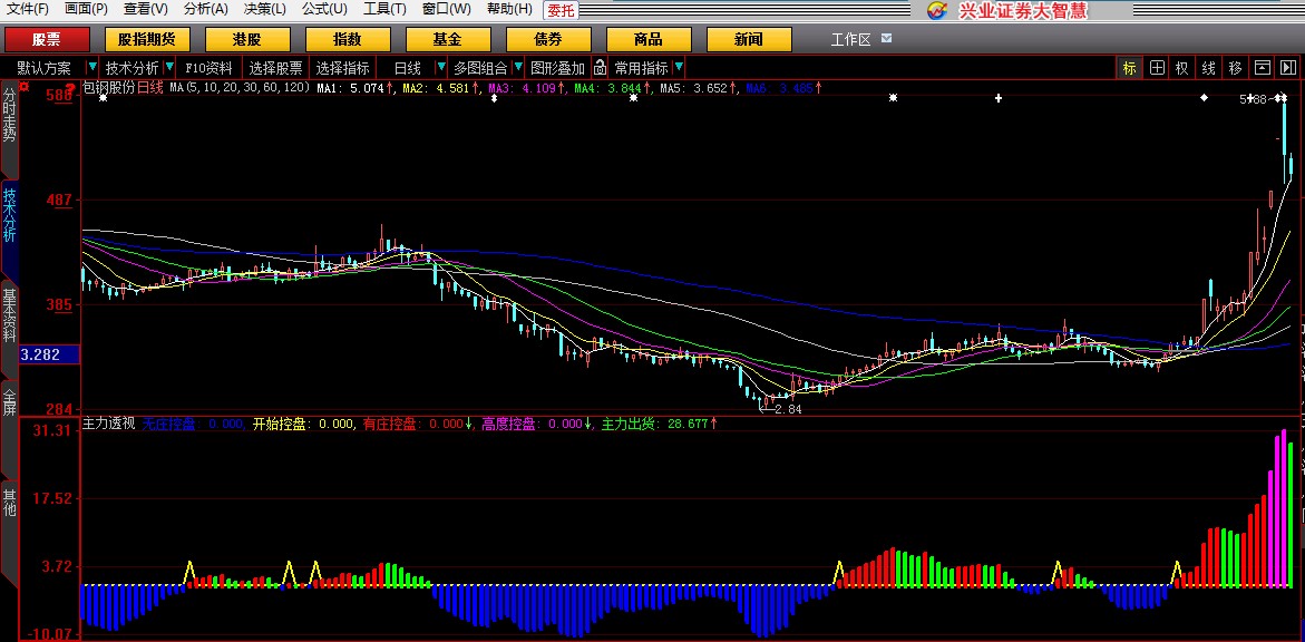 - 开始控盘:IF(A10,5,0),LINETHICK2,COLORYELLOW;