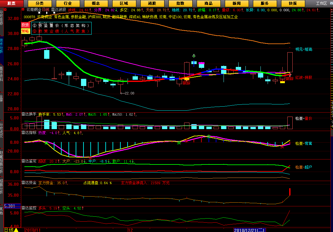 雷达监控指标,副图加密无时间限(贴图主图分时对照)