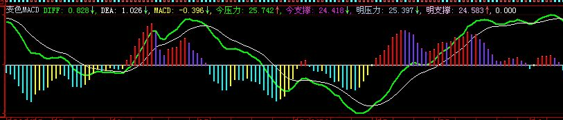 会变色的MACD,并且有今天和明天的压力和支撑(变色MACD)