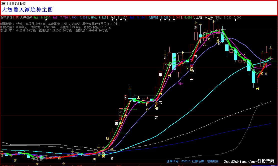 PARTLINE(趋势线,CLOSE>=趋势线),colorred,LINETHICK4;