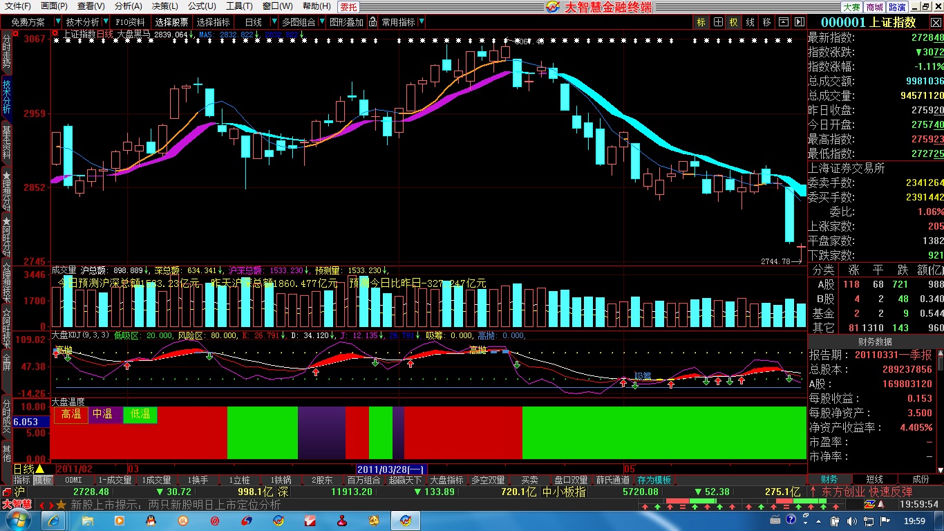 大盘温度 大盘监测指标,加密不限时,原创指标 阅读 作者:公式网时间 2011-07-06 08:56:06 大智慧公式 做股票要根大盘走,不要根感觉,本指标可以让你根着大盘骑黑马。把大盘定义为三个温度。低温、中温、高温。红色高温区做波段,中温区做短线,低温区只看不做。这样保你大赚小赔 查看完整内容【开通VIP会员】 VIP会员数十万个公式随便用