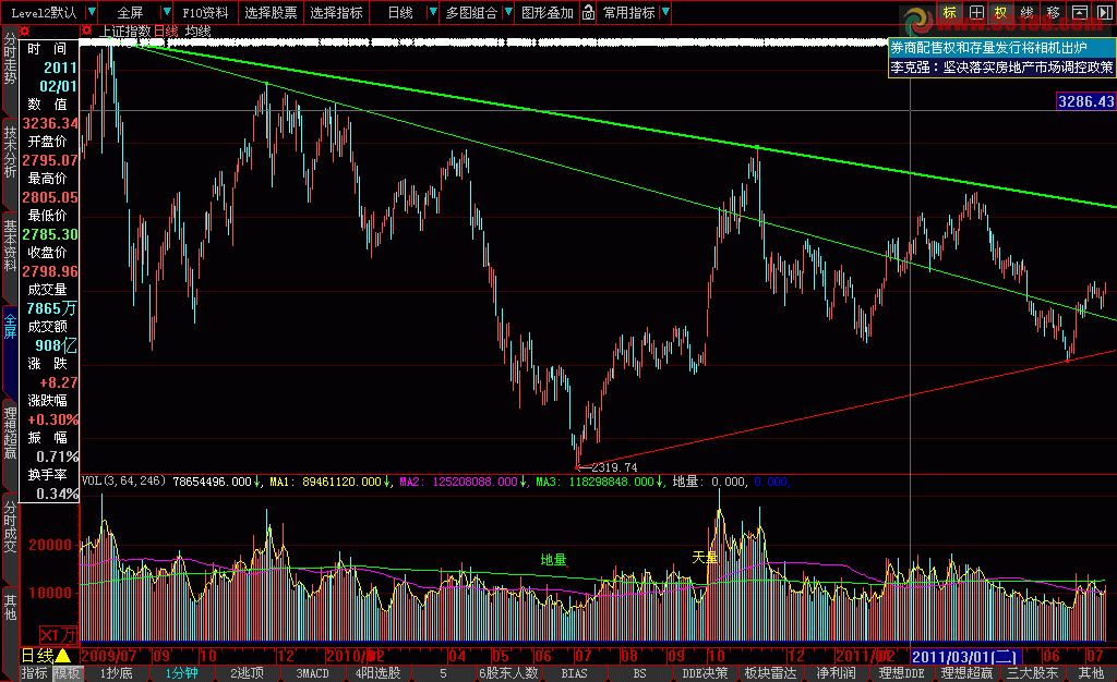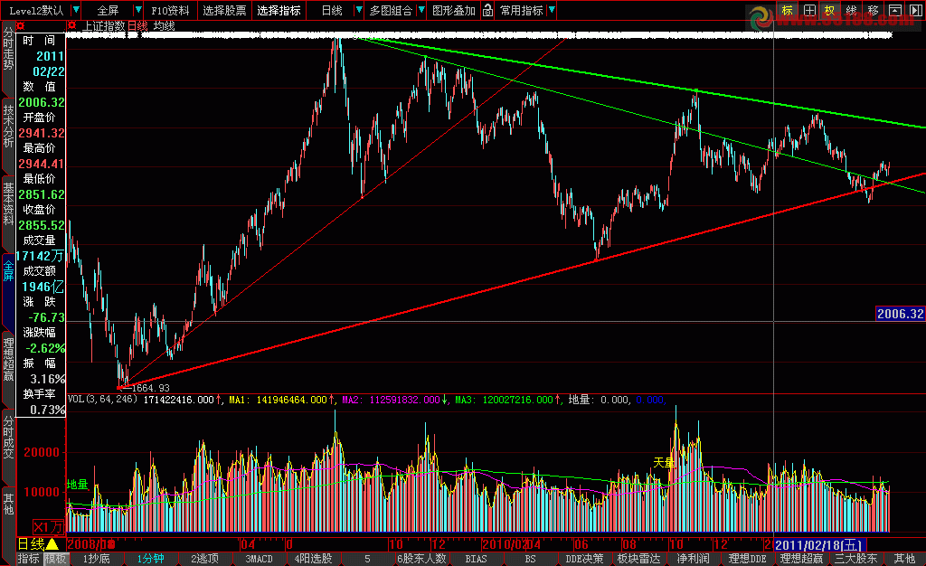 大智慧主图自动画压力支撑线公式源码 阅读 作者:公式网时间 2011-07-17 09:02:40 大智慧公式 今天有时间写了一个在主图上自动画压力支撑线的公式 {压力支撑}; DRAWLINE(HIGH>=HHVALL(HIGH),HIGH,HIGH>=PEAK(1,30,1 ),HIGH,1),LINETHICK2,colorgreen; DRAWLINE(HIGH>=HHVALL(HIGH),HIGH,HIGH>=PEAK(1,15,1 ),HIGH,1),colorgreen; DRAWLINE(LOW<=LLVALL(LOW) 查看完整内容【开通VIP会员】 VIP会员数十万个公式随便用