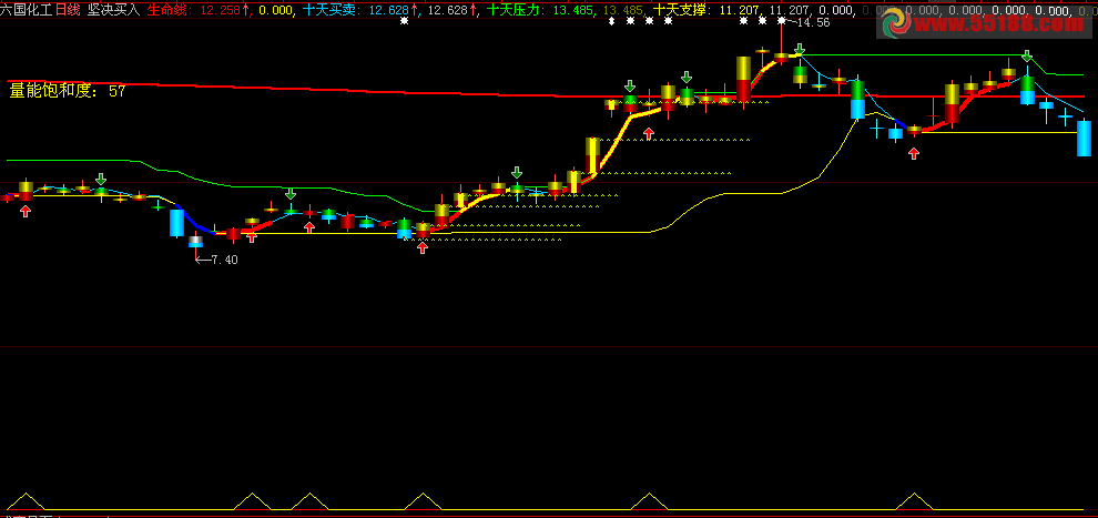 十天压力:HHV(十天买卖,13),COLOR00FF00,LINETHICK1;