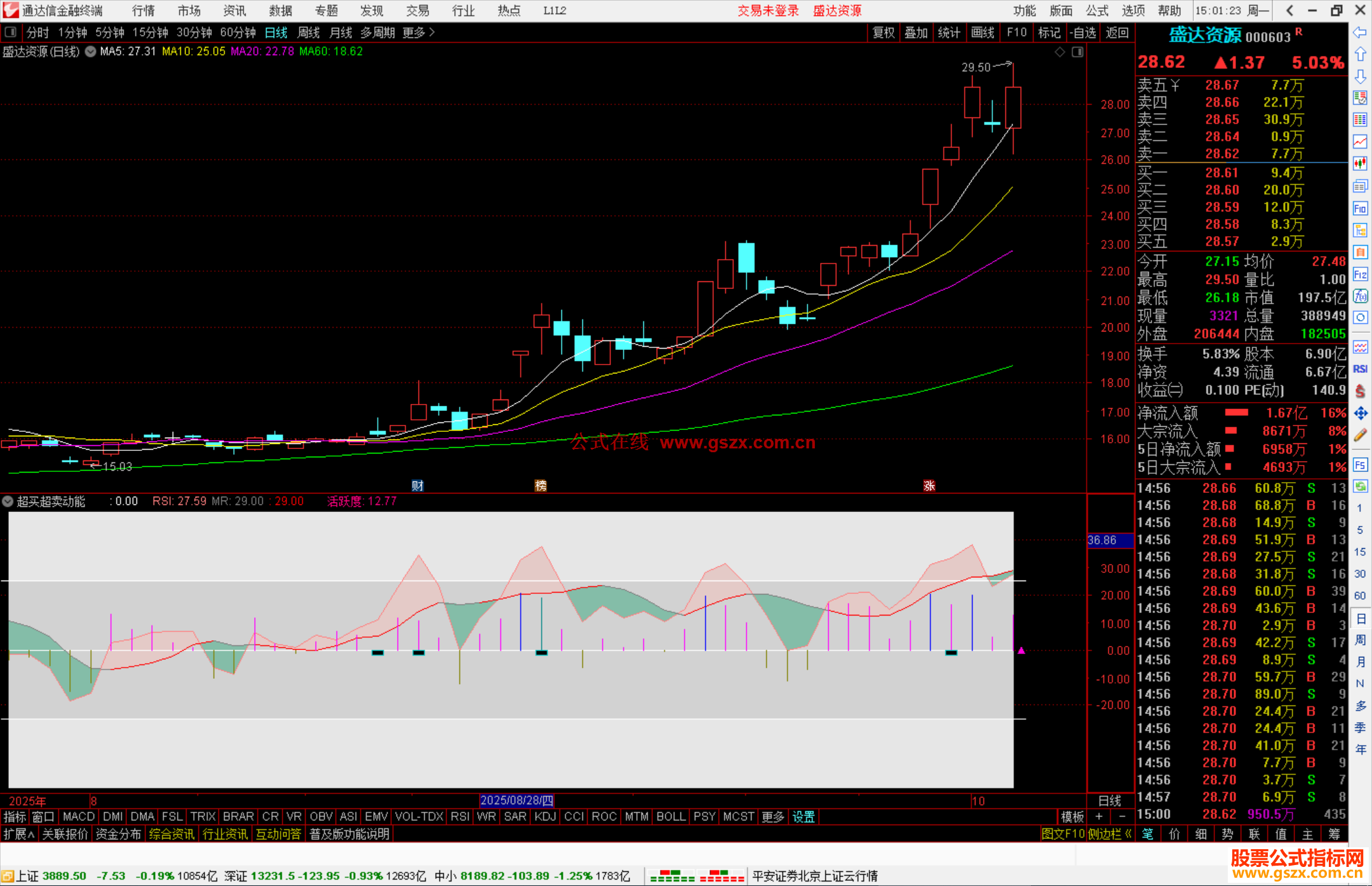 MD:=MA(RS1,6),COLOR0000FF,NODRAW;
