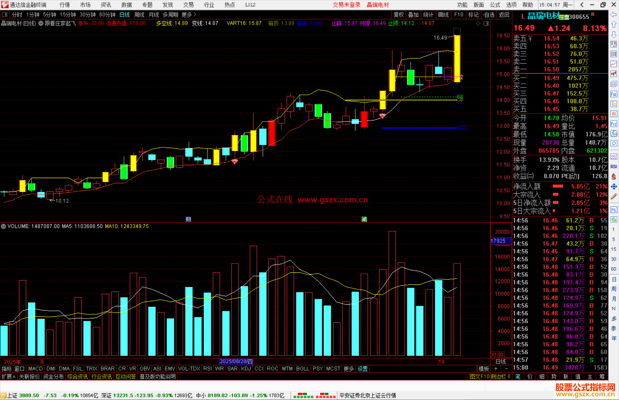 VARB8:=MAX(MAX(HHV((HIGH+CLOSE)/2,5),变线+MA(HIGH-变线,VARC2)),IF(变线>REF(变线,1),变线*1.03,变线));