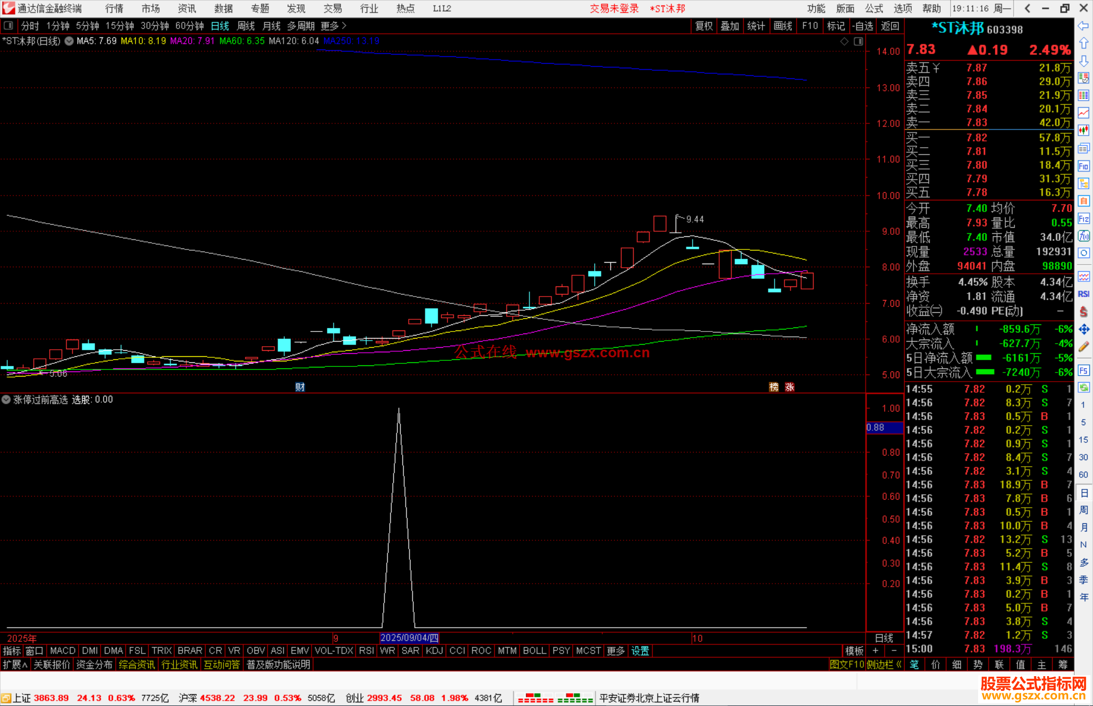 通达信涨停过前高选股指标公式副图源码 阅读 作者:公式网时间 2025-10-20 19:15:23 通达信公式 { 选股条件:昨日非涨停,今日涨停;20日内有过涨停;上次涨停创60日新高;今日突破前涨停价 }{20天内有过涨停} { 涨停定义 }{涨跌停的定义,包括北证A股}CS1:=IF(INBLOCK('科创板') OR INBLOCK('创业板'),0.2,IF(INBLOCK('ST板块'),0.05,IF(INBLOCK('北证A股'),0.3,0.1)));ZT:=C>=ZTPRICE(REF(C,1),CS1) AND C=H;曾涨停:=EXIST(ZT,20);条件1:=REF(ZT,1)=0 AND ZT; { 昨日非涨停今日涨停 }{ 寻找11日内上一次涨停 }LAST_ZT:=REF(BARSLAST(ZT),1)+1; { 上次涨停位置 }二十日内曾涨停:=LAST_ZT<=20 AND LAST_ZT>0; { 20日内有过涨停 }{ 上 查看完整内容【开通VIP会员】 VIP会员数十万个公式随便用