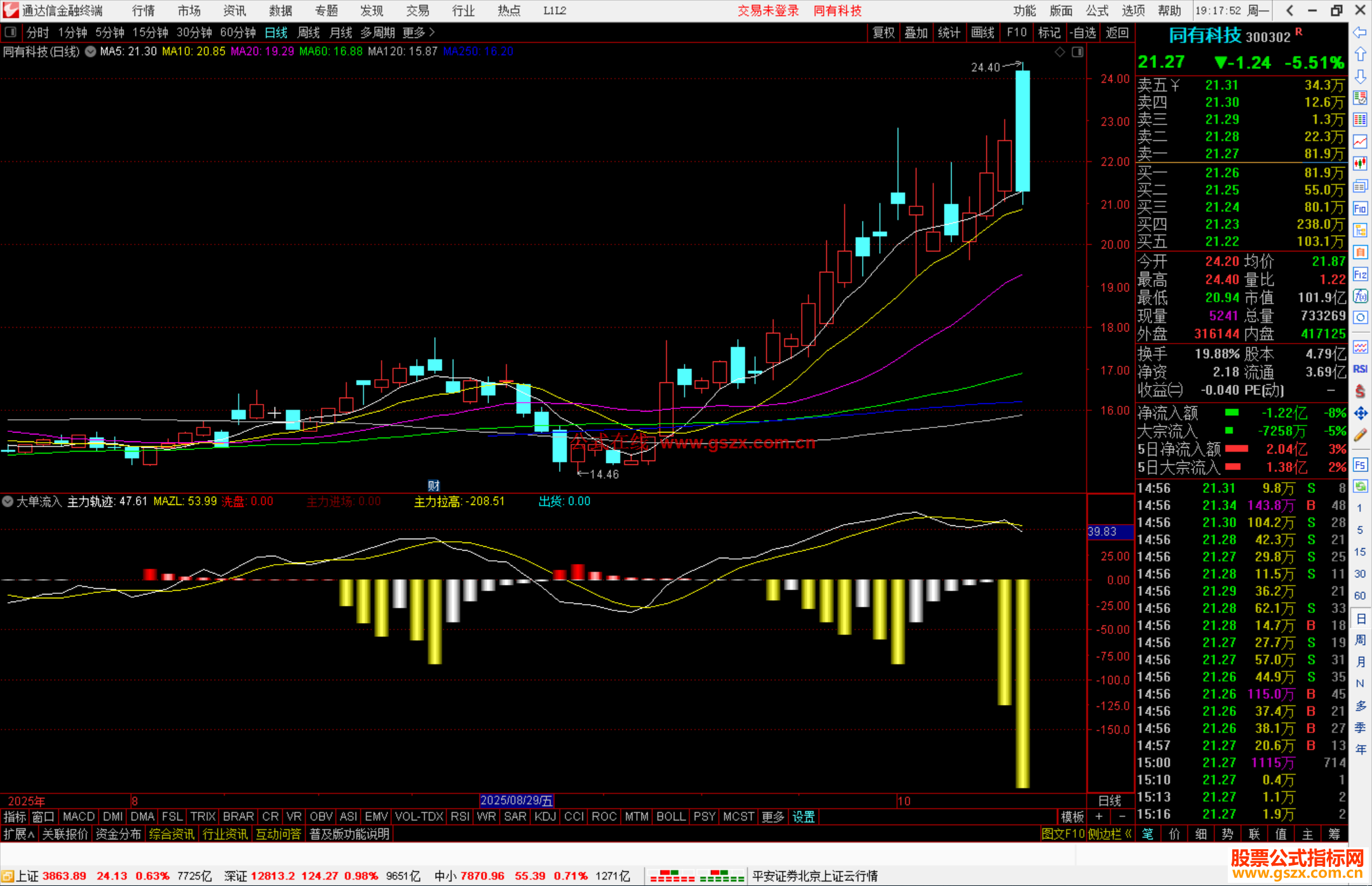 STICKLINE(主力跟踪5< REF(主力跟踪5,1),0,主力跟踪5,0.3,0),COLORAAAAFF;