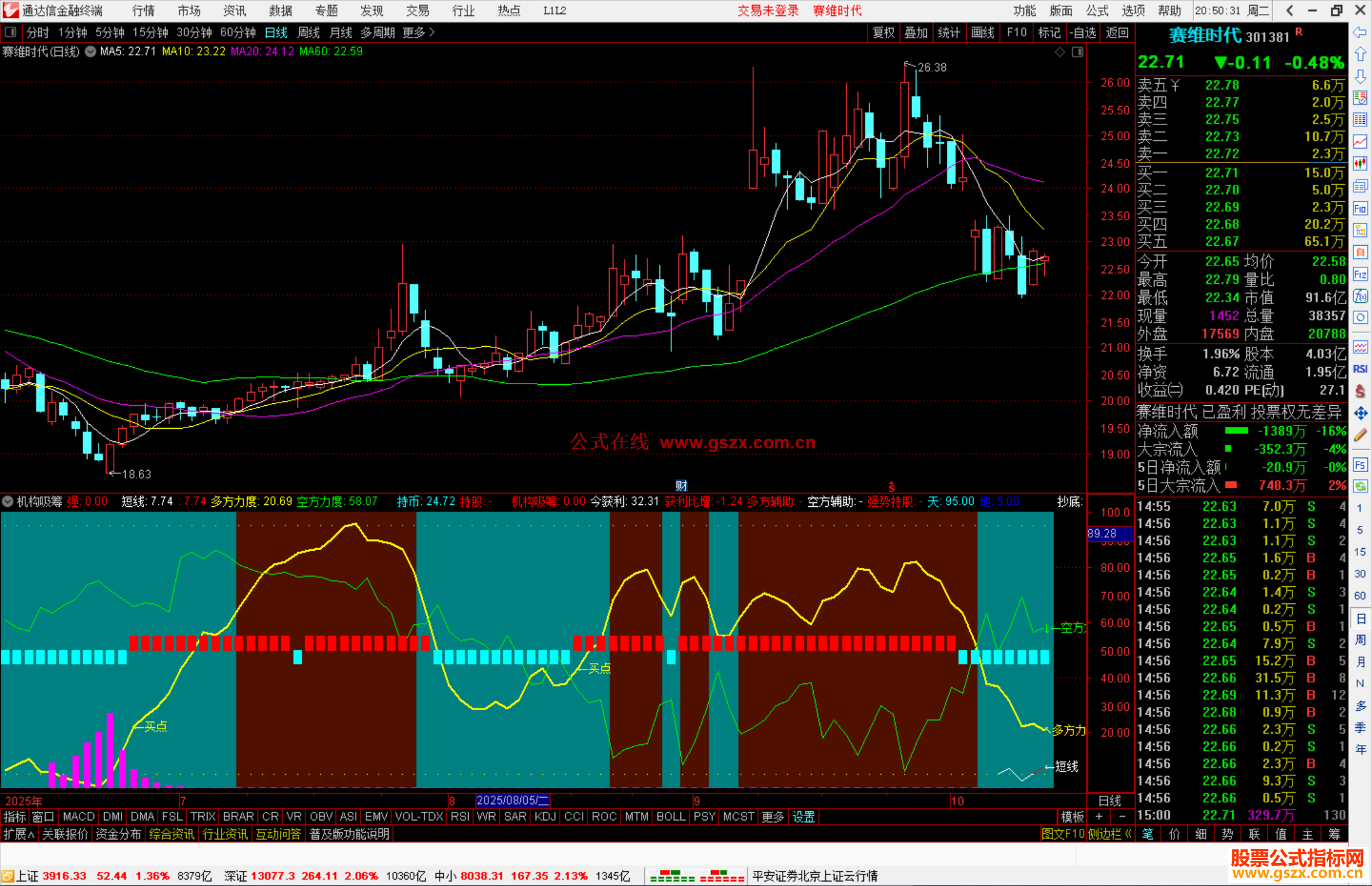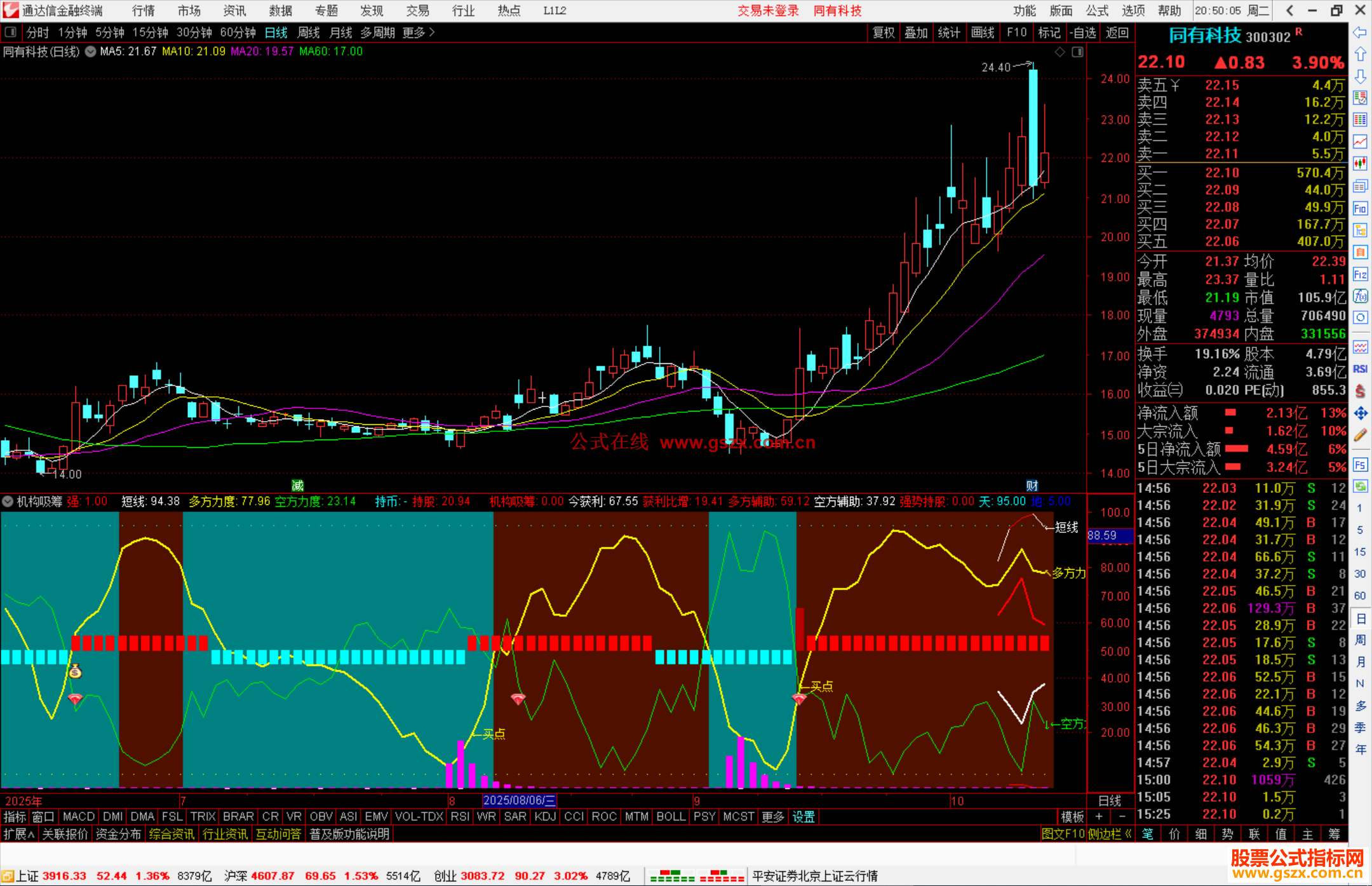 空方力度:100*(HHV(HIGH,趋势底部)-CLOSE)/(HHV(HIGH,趋势底部)-LLV(LOW,趋势底部)),COLOR00EC00,LINETHICK1;