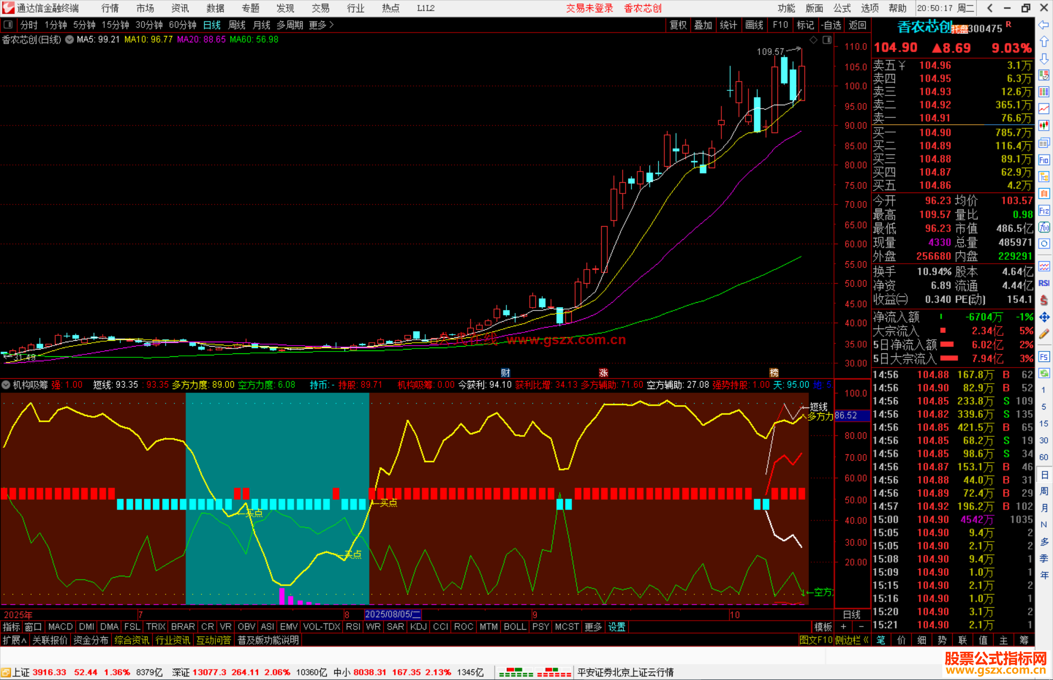 STICKLINE(空方力度1< 多方力度1,0,100,6.0,0)COLOR001050;
