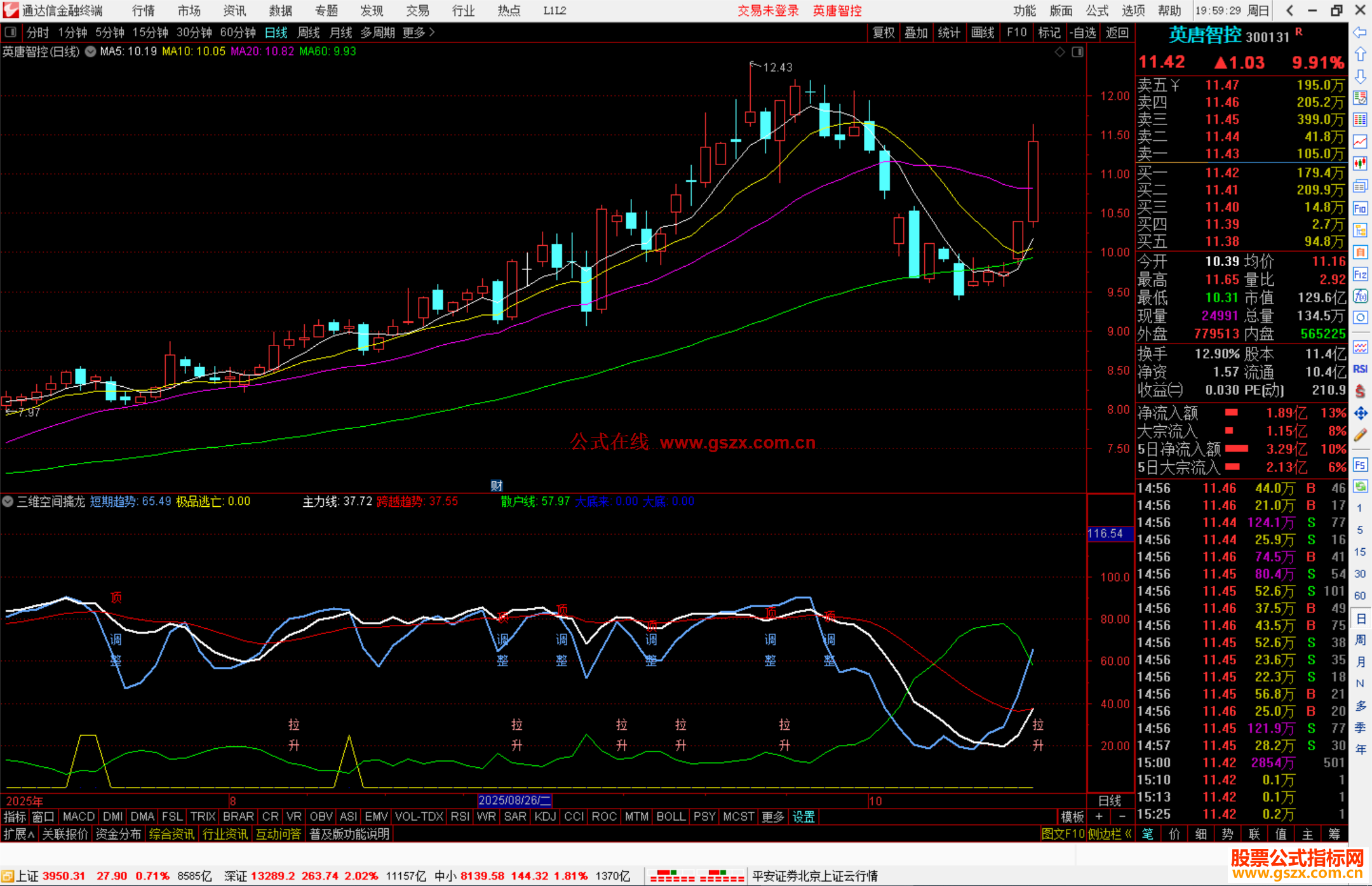 DRAWTEXT(CROSS(主力线,93)AND Q10< -13,57,'大'),LINETHICK5;