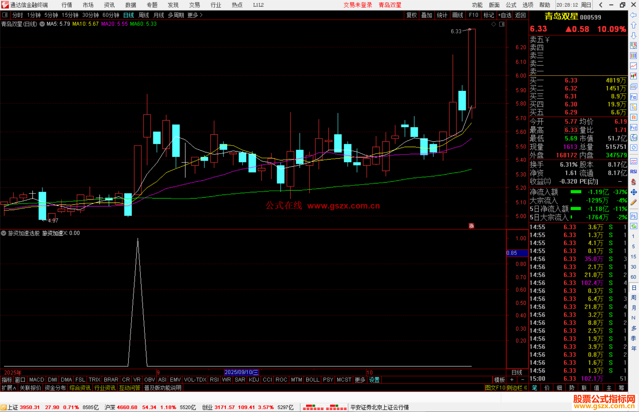 通达信游资加速选股指标公式副图源码 阅读 作者:公式网时间 2025-10-26 20:28:58 通达信公式 XG1:=(EMA(CLOSE,12)-EMA(CLOSE,26))*100;XG2:=EMA(XG1,9);XG3:=2*(XG1-XG2);XG4:=IF((CLOSE>REF(CLOSE,1)),88,0);XG5:=(((CLOSE-MA(CLOSE,6))/MA(CLOSE,6))*100);XG6:=(((CLOSE-MA(CLOSE,12))/MA(CLOSE,12))*100);XG7:=(((CLOSE-MA(CLOSE,24))/MA(CLOSE,24))*10 查看完整内容【开通VIP会员】 VIP会员数十万个公式随便用