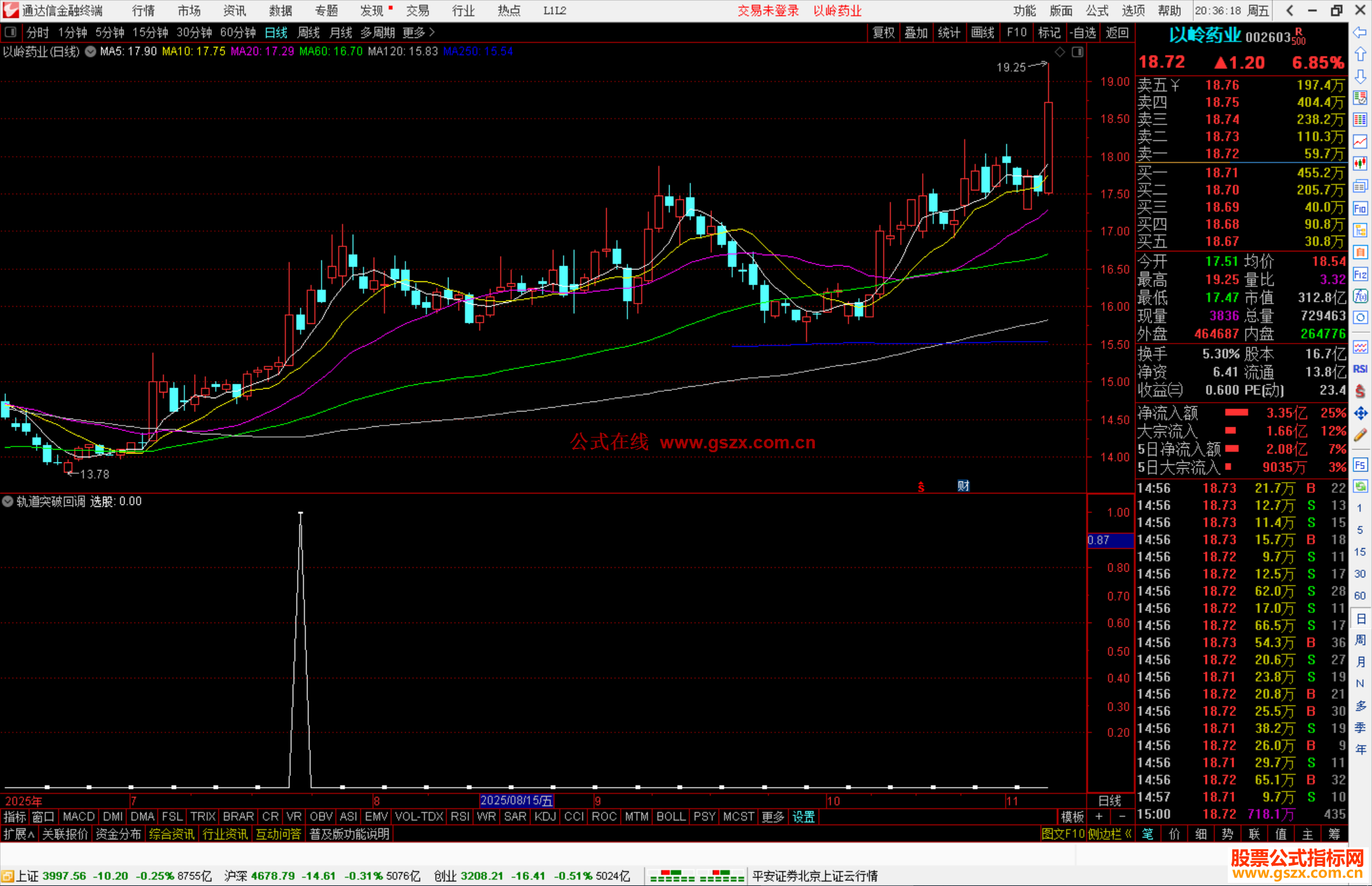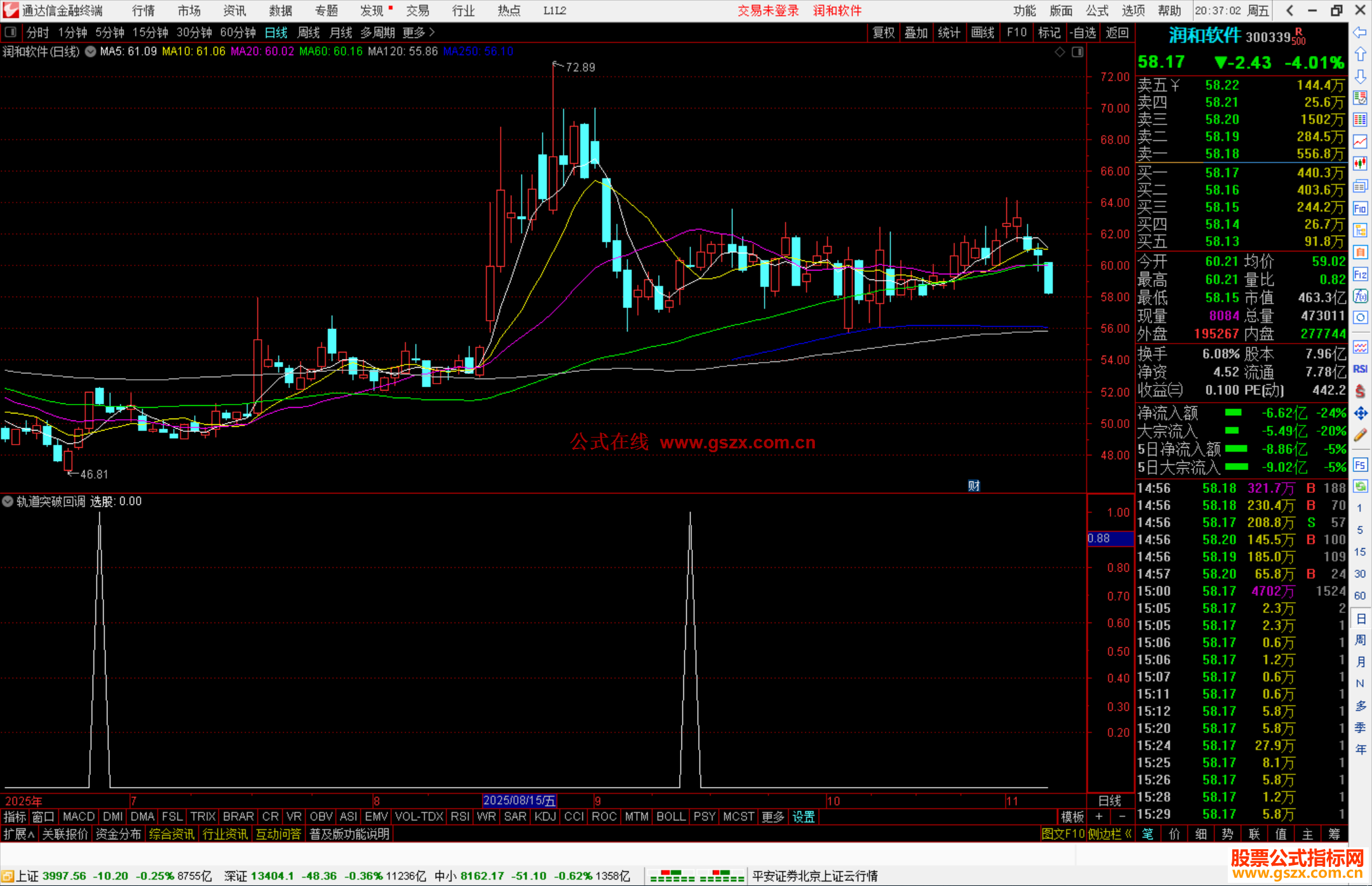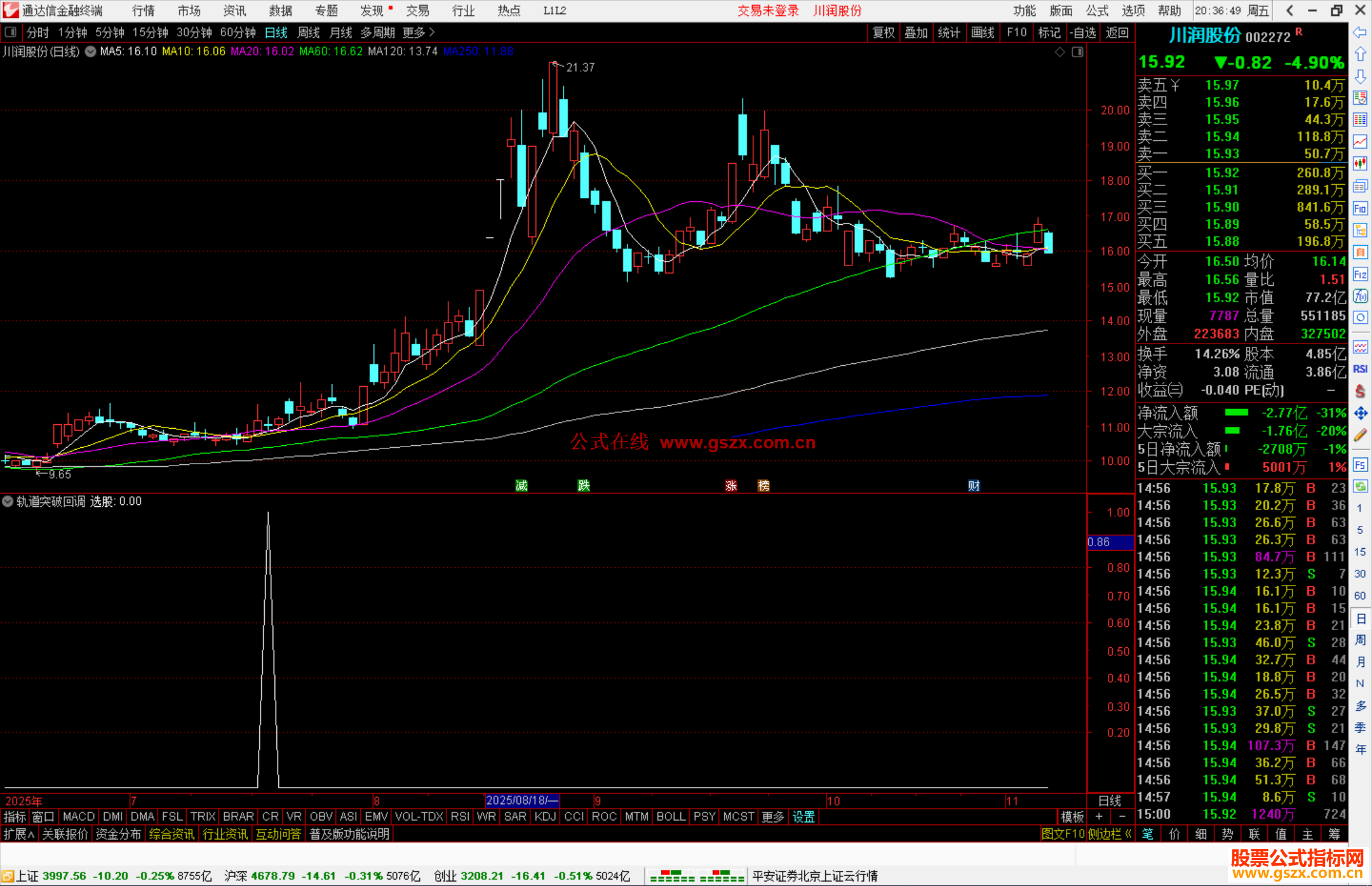 通达信轨道突破回调选股指标公式副图源码 阅读 作者:公式网时间 2025-11-07 20:37:50 通达信公式 VAR1:=CODELIKE('60')||CODELIKE('00')||CODELIKE('30');VAR2:=MA((2*CLOSE+HIGH+LOW)/4,5);VAR3:=VAR2*102/100;VAR4:=VAR2*(200-102)/100;VAR5:=ABS((2*CLOSE+HIGH+LOW)/4-MA(CLOSE,20))/MA(CLOSE,20);VAR6:=DMA(CLOSE,VAR5);VAR7:=(1+7/100)*VAR6;VAR8:=(1-7/100)*V 查看完整内容【开通VIP会员】 VIP会员数十万个公式随便用