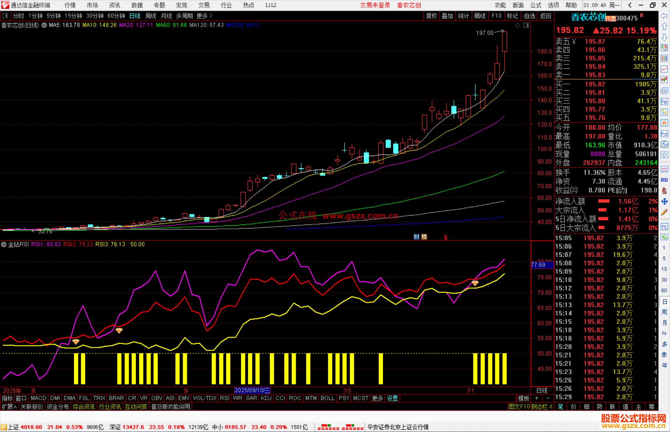 RSI3:SUM(MAX(CLOSE-VAR1,0),125)/SUM(ABS(CLOSE-VAR1),125)*100,CO