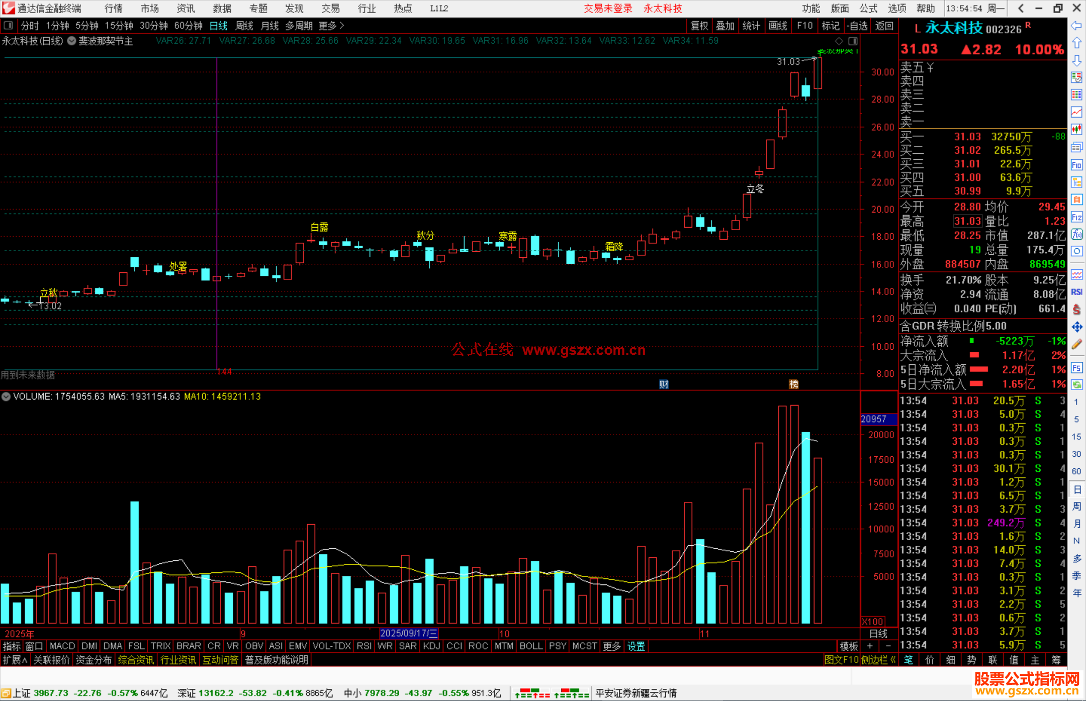 DRAWTEXT(VAR6=VAR22,(VAR31)*1.001,STRCAT(' 0.618%% ',CON2STR(VAR31,3))),COLOR889900;