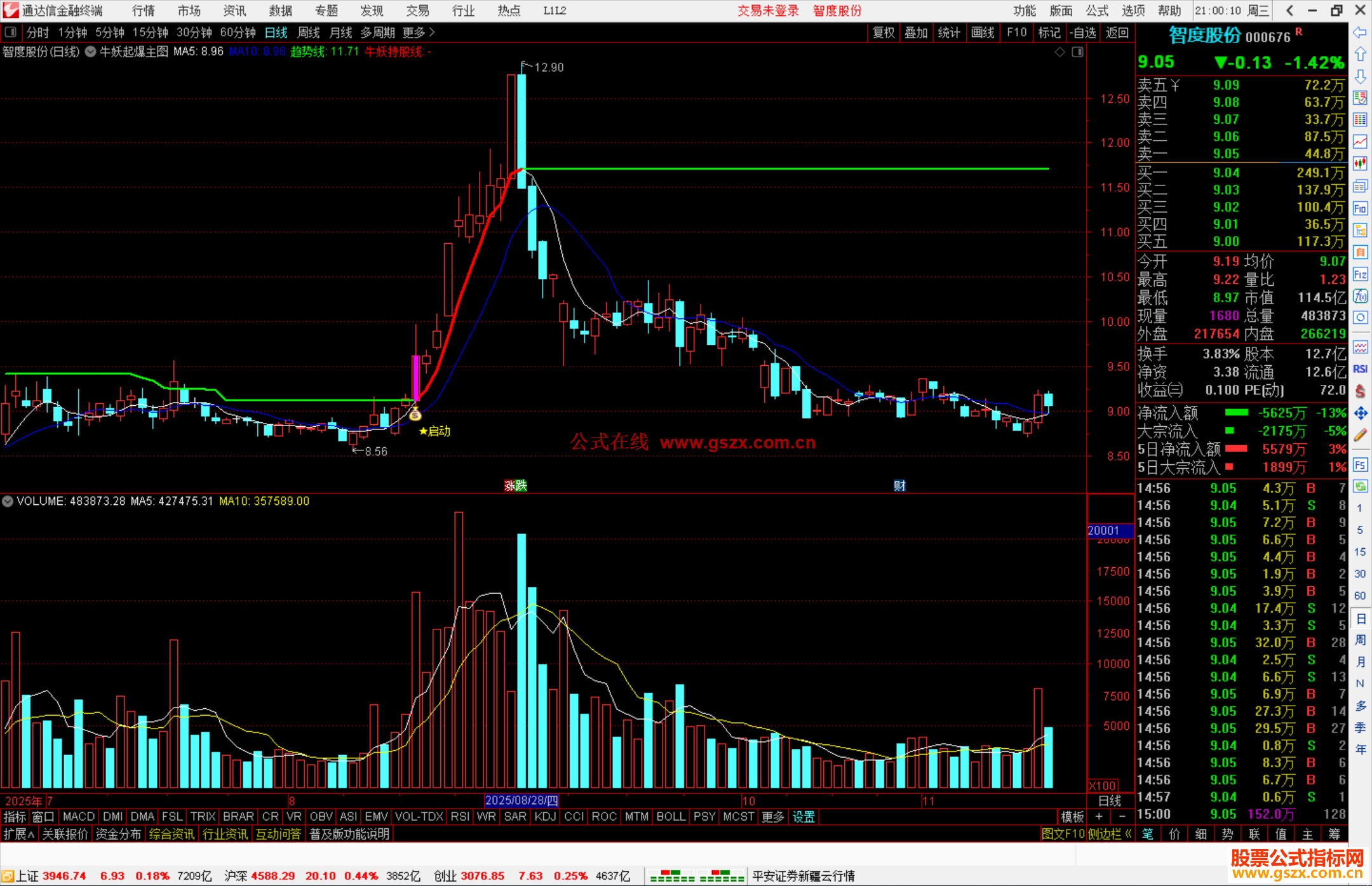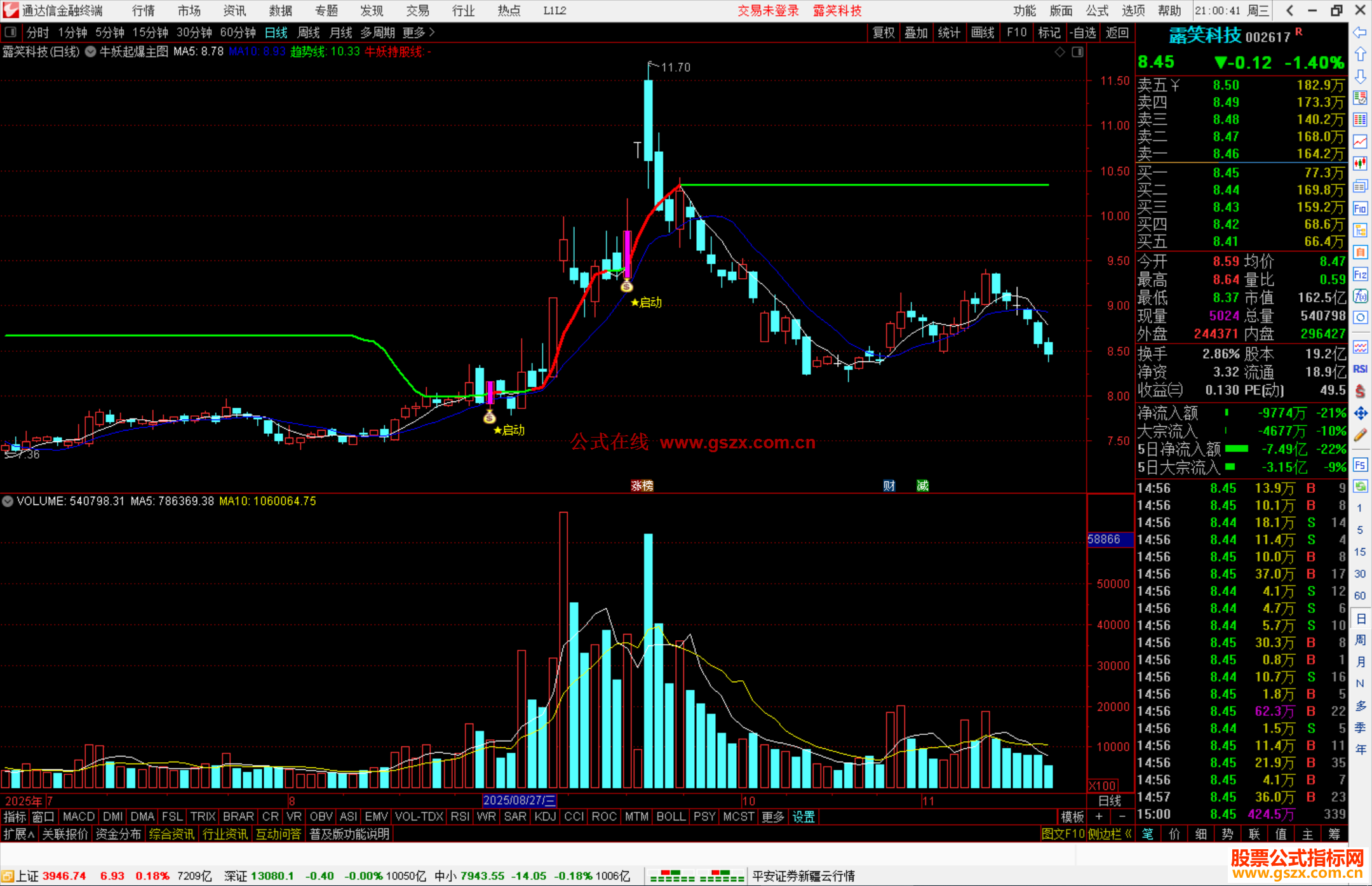 趋势线:HHV(MA5,100),COLORGREEN,LINETHICK2;