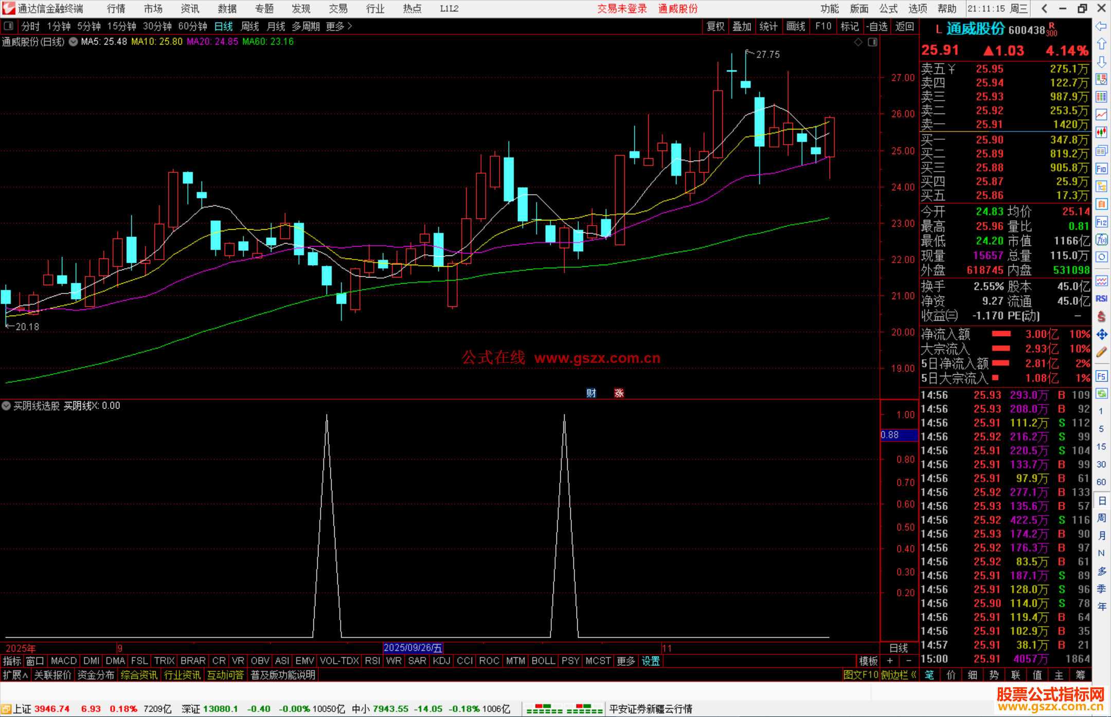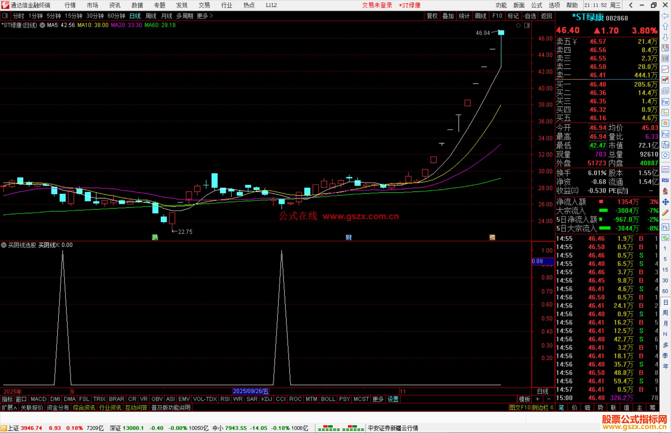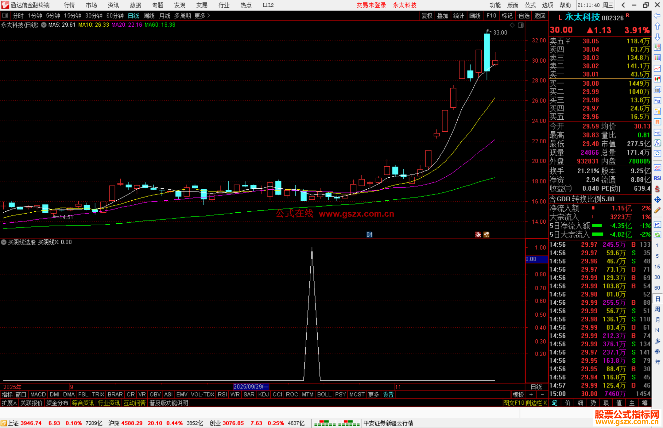 通达信买阴线选股指标公式副图源码 阅读 作者:公式网时间 2025-11-19 21:12:57 通达信公式 VAR1:=EMA(CLOSE,2);VAR2:=EMA(CLOSE,18);VAR3:=IF(CROSS(VAR2,VAR1),5,0* 10000);VAR4:=(CLOSE-LLV(LOW,10))/(HHV(HIGH,10)-LLV(LOW,10))*100;VAR5:=(VAR4/2+22)*1;VAR6:=EMA(VOL,13);VAR7:=EMA(AMOUNT,13);VAR8:=((VAR7/VAR6)/100);VAR9:=(((CLOSE-V 查看完整内容,请升级VIP
