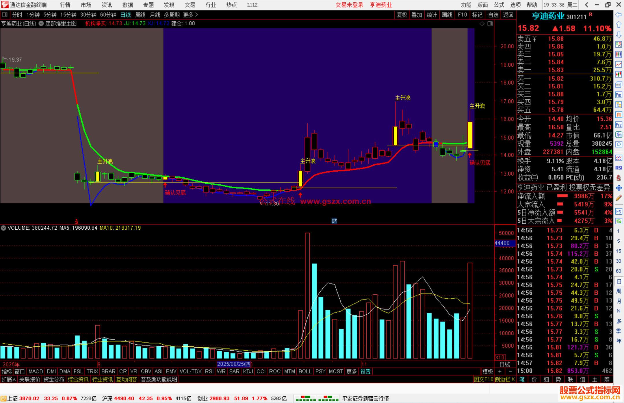 机构净买:DMA((2*CLOSE+LOW+HIGH)/4,AA),LINETHICK3,COLORRED;