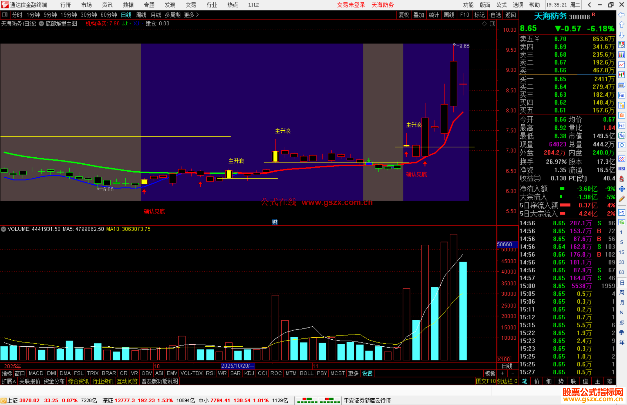 通达信底部堆量主图指标公式源码副图