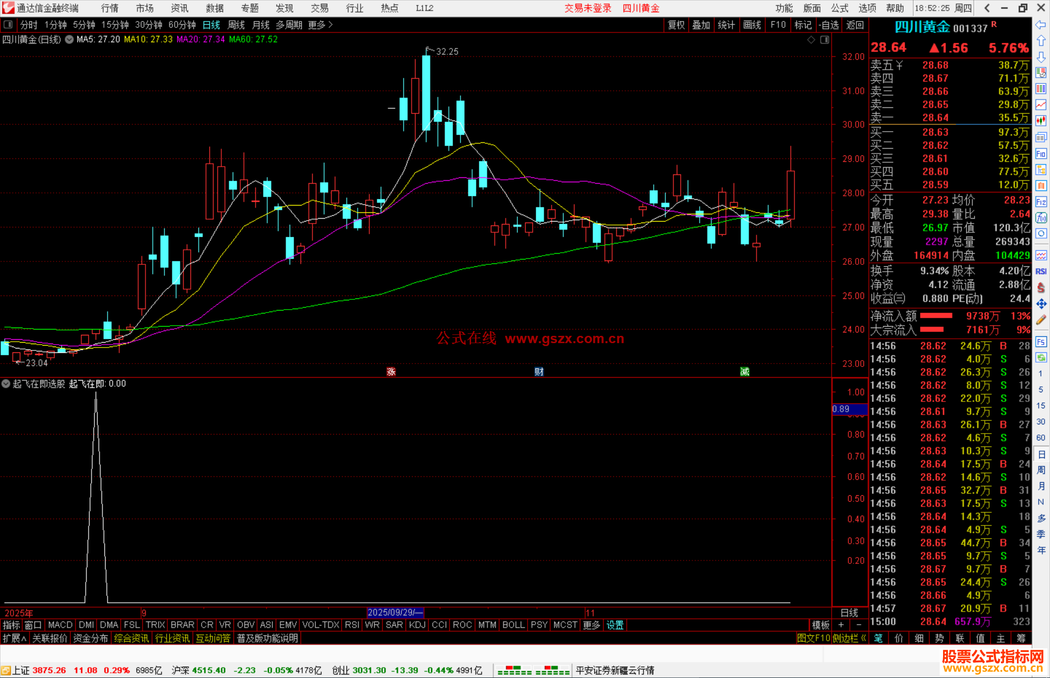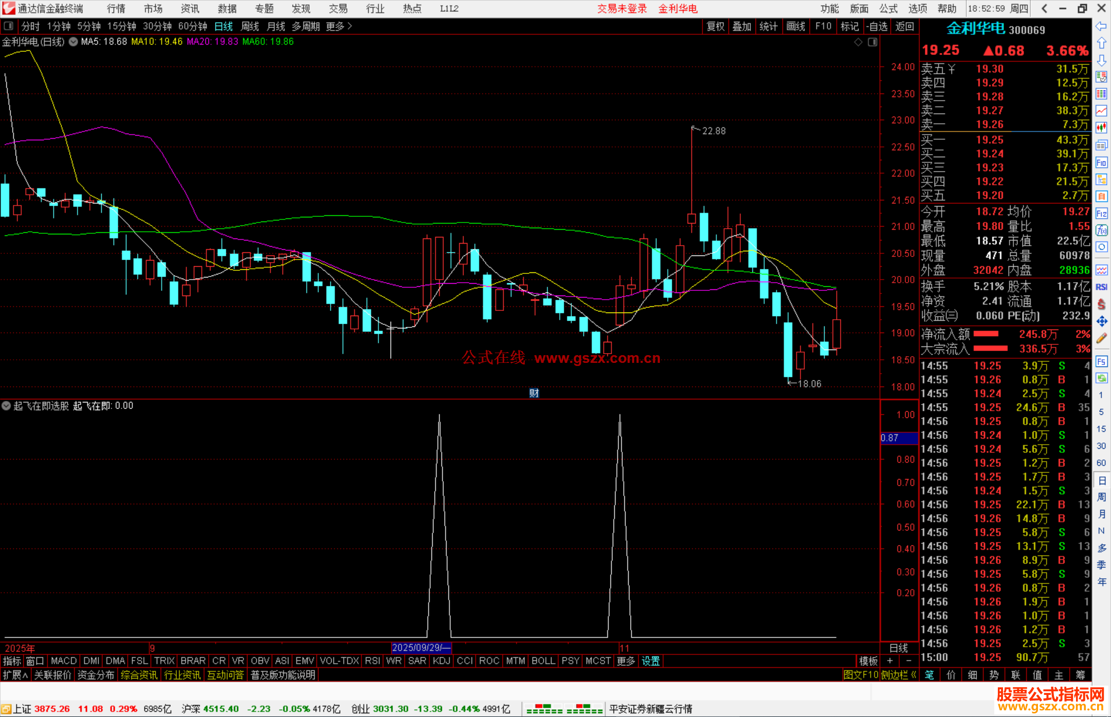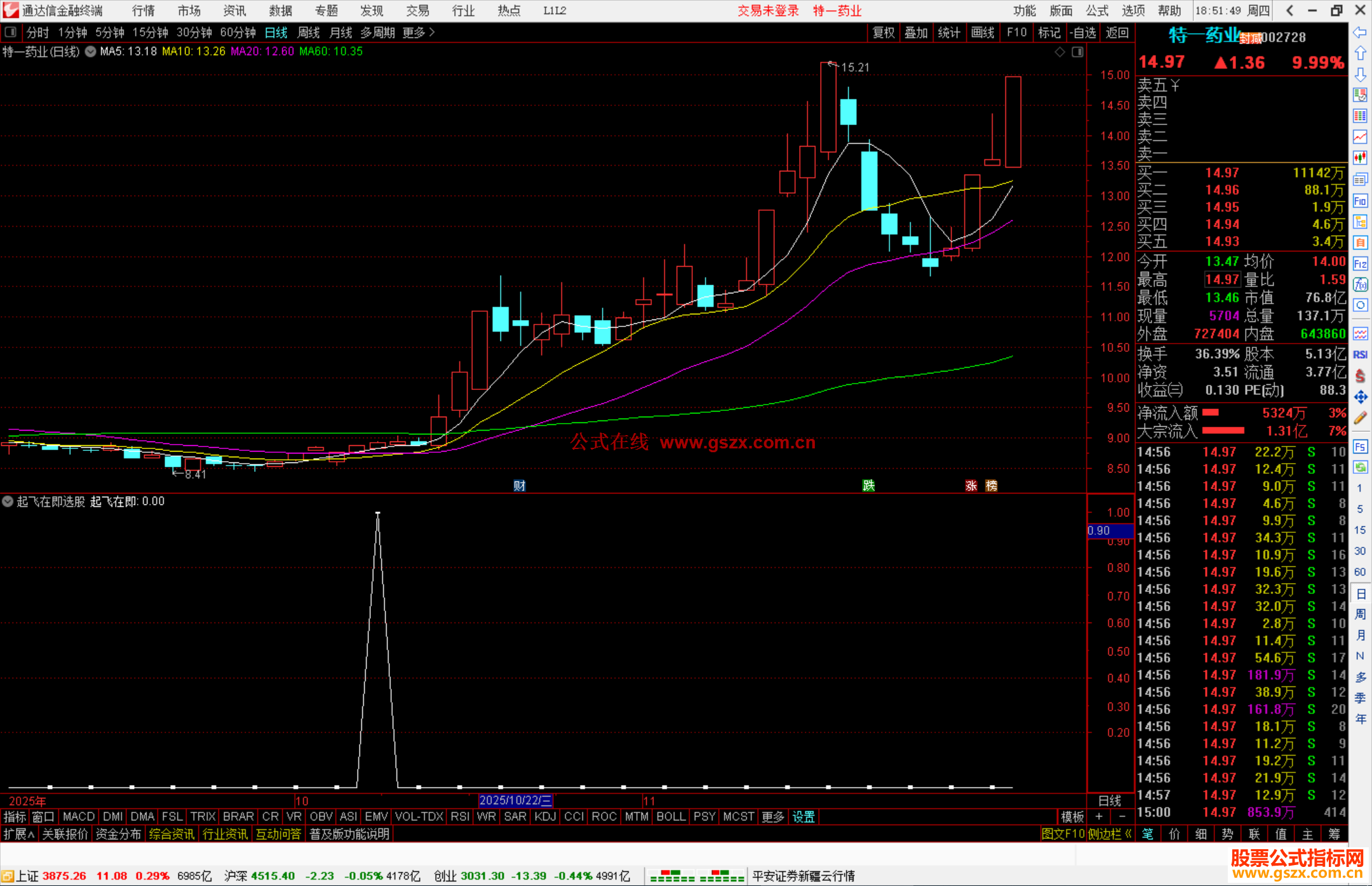 通达信起飞在即选股指标公式副图源码 阅读 作者:公式网时间 2025-11-27 18:54:01 通达信公式 VAR1:=MAX(REF(C,1),HIGH);VAR2:=MIN(REF(C,1),LOW);VAR3:=VAR1-VAR2;VAR4:=VAR2+VAR3*7/8;VAR5:=(CLOSE-LLV(LOW,55.144))/(HHV(HIGH,55.144)-LLV(LOW,55))*80;VAR6:=SMA(VAR5,7,1);VAR7:=SMA(VAR6,5,1);起飞在即:CROSS(VAR6,VAR7) AND VAR6<20; 查看完整内容,请升级VIP