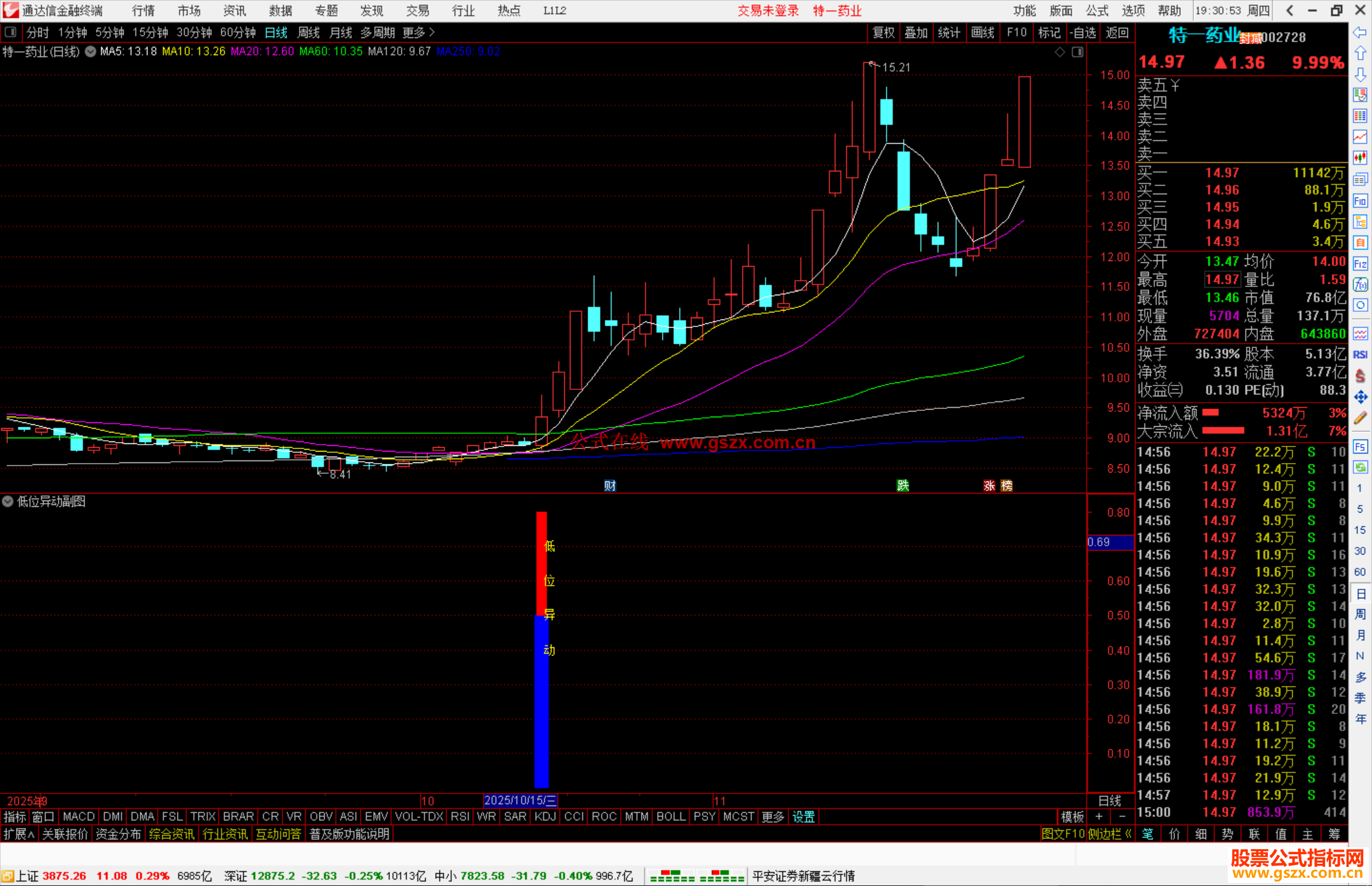 通达信低位异动指标公式 低位异动买入信号副图源码