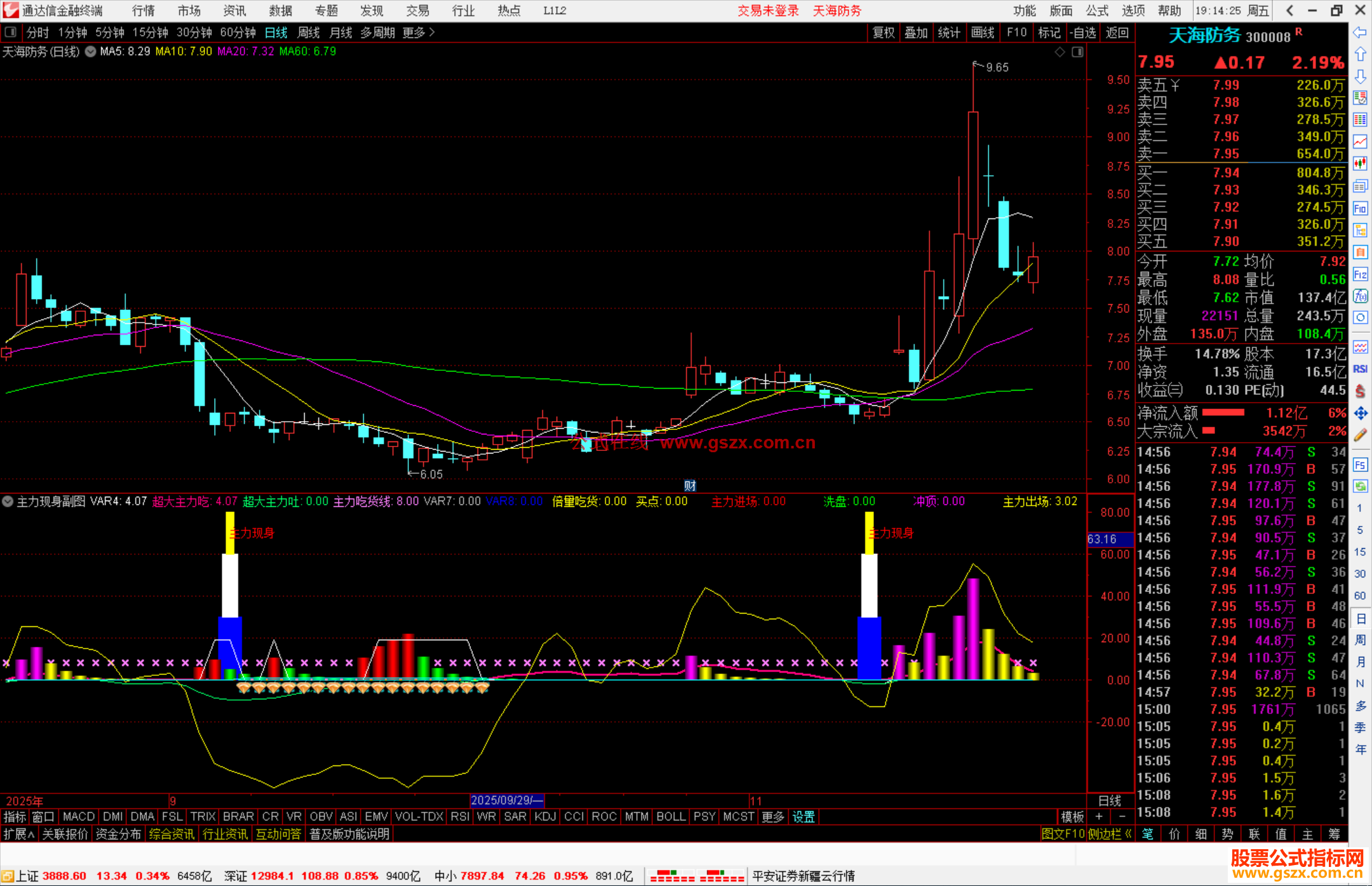主力进场:IF(VAR25>REF(VAR25,1),VAR25,0),COLORRED,NODRAW;