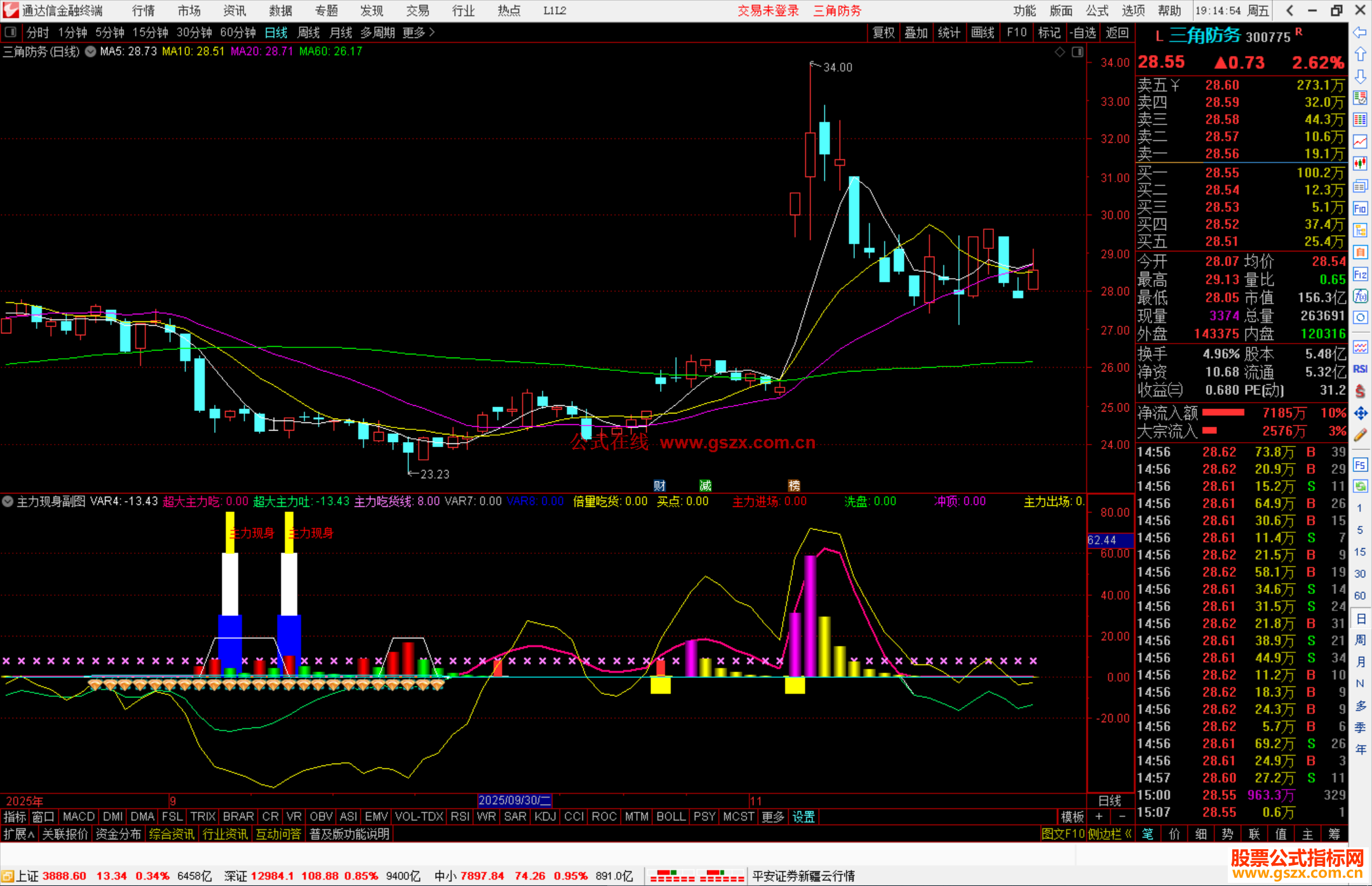 超大主力吃: IF(VAR4>=0,VAR4,0),COLOR7F00FF,LINETHICK2;