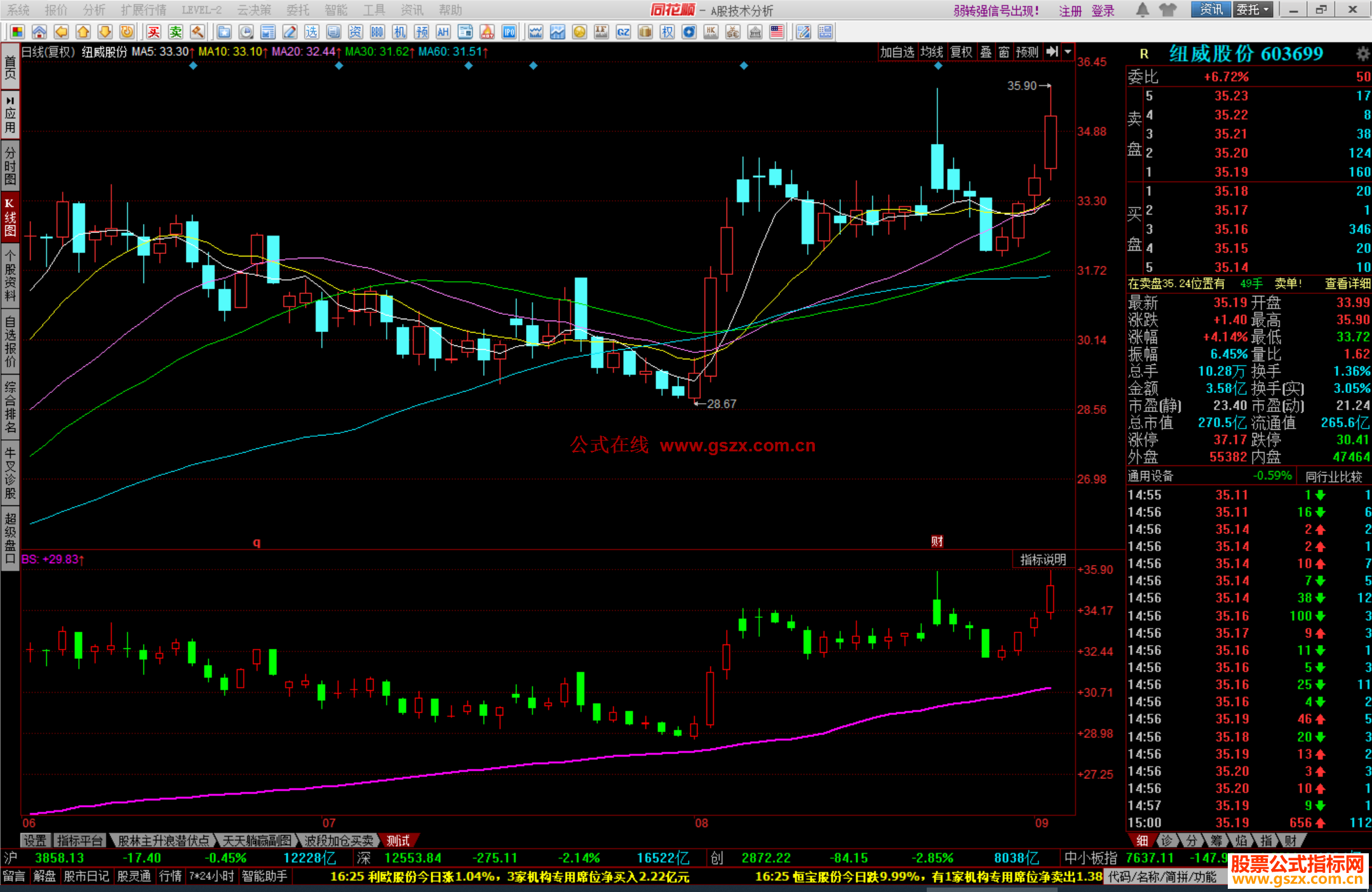 同花顺搏杀生命指标公式测试副图源码 阅读 作者:公式网时间 2018-06-12 07:20:10 同花顺公式 amv0:=vol*(o+c)/2; BS:sum(amv0,88)/sum(vol,88),colorff00ff,linethick2; STICKLINE(close>=open,open,close,5,1),colorred; STICKLINE(open>close,close,open,5,0 ),color00ff00; STICKLINE(close>=open,close,HIGH,0.5 ,1 ),colorred; 查看完整内容【开通VIP会员】 VIP会员数十万个公式随便用