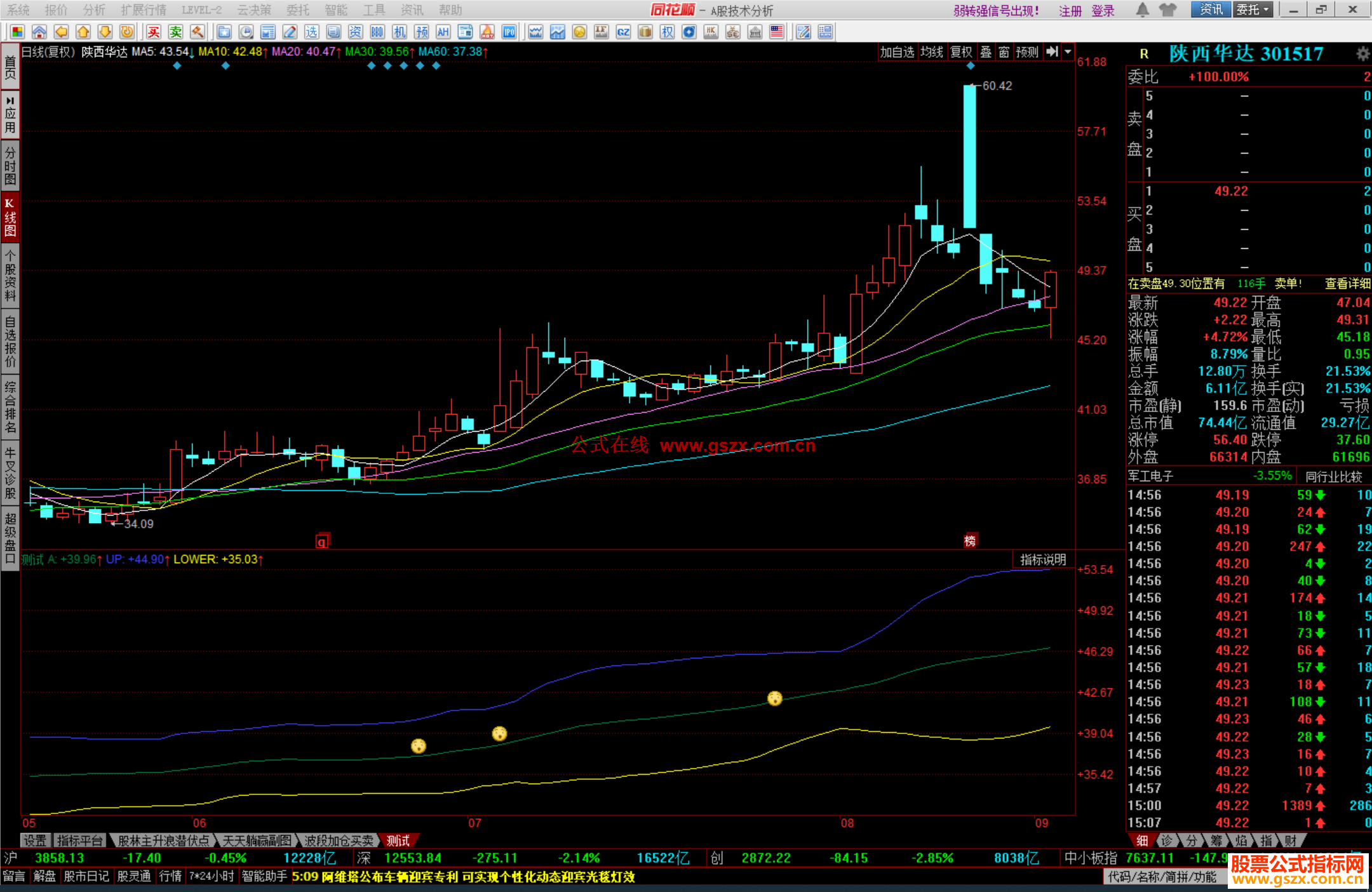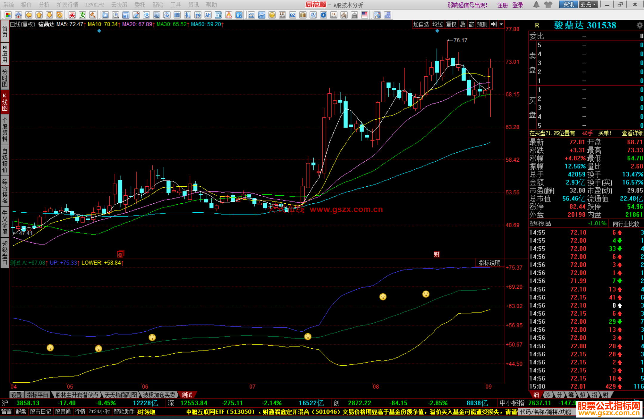 同花顺次日涨停指标公式副图源码 阅读 作者:公式网时间 2019-03-08 08:18:39 同花顺公式 A : MA(CLOSE,26); UP: A + 2*STD(CLOSE,26); LOWER: A - 2*STD(CLOSE,26); W1:=C=HHV(C,20); W2:=BARSLAST(W1); W3:=IF(W2>0,REF(C,W2),REF(C,W2)); W4:=CROSS(C,REF(W3,1)); DRAWICON(W4 AND COUNT(W4,5)=1,LOW,3); 查看完整内容【开通VIP会员】 VIP会员数十万个公式随便用
