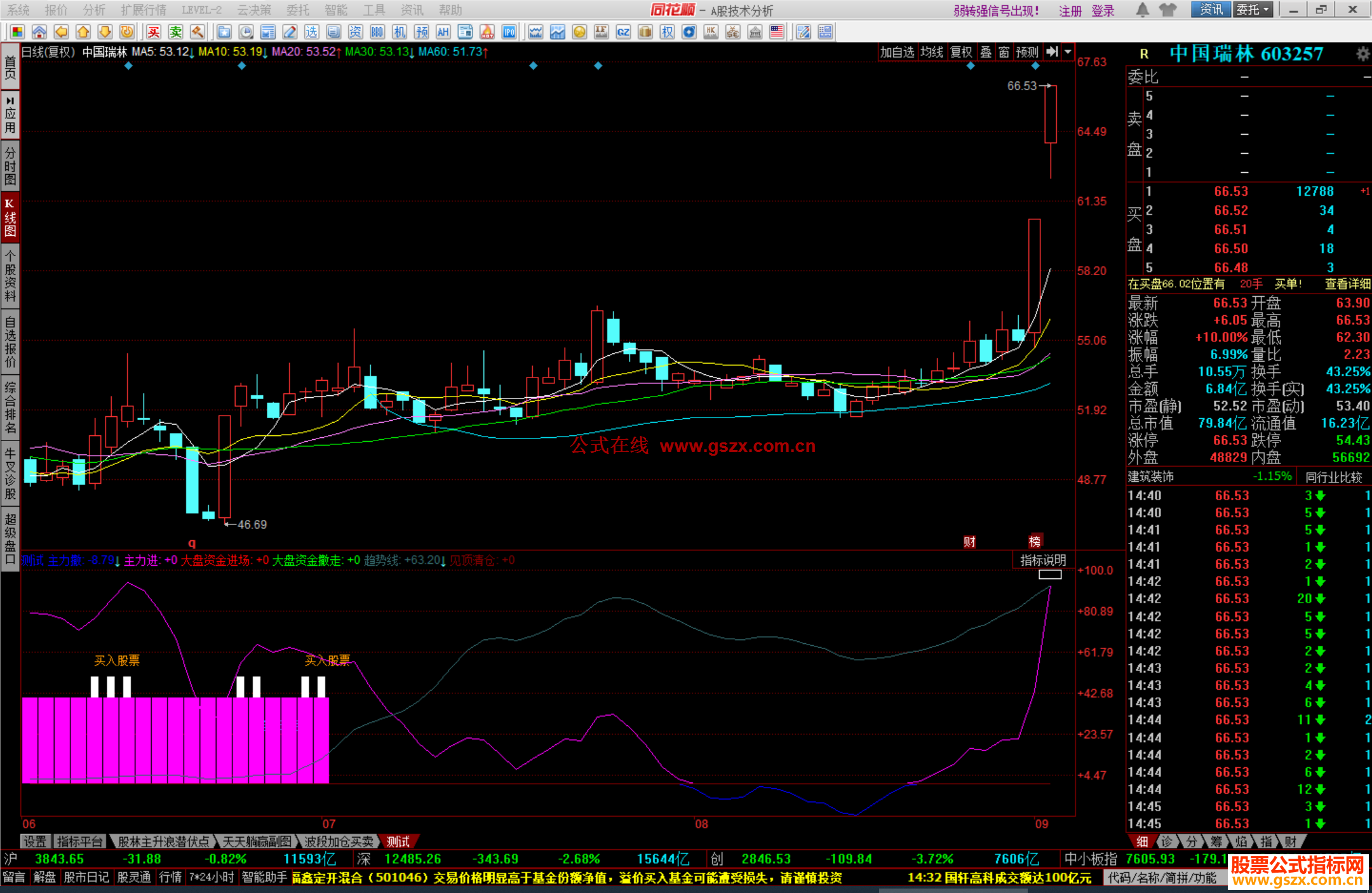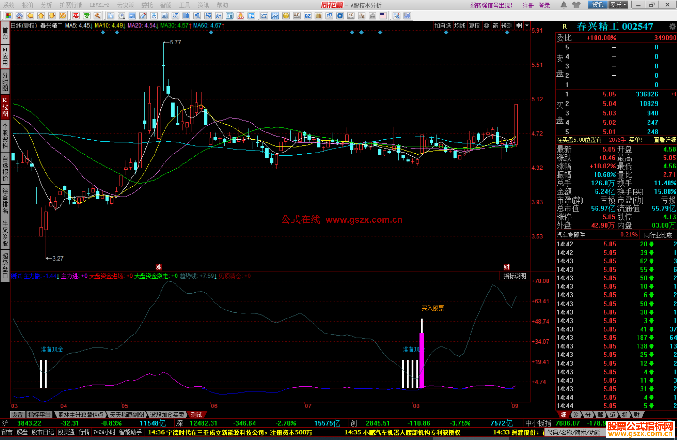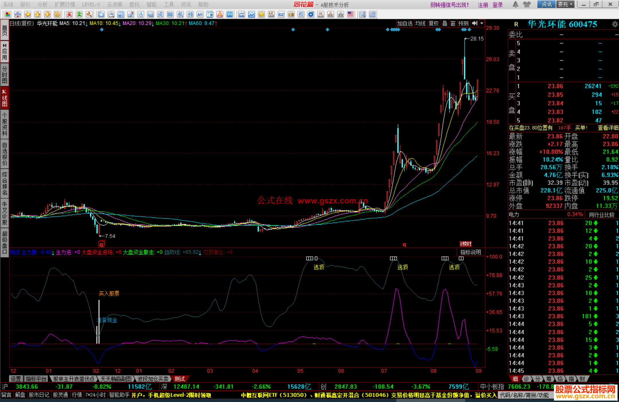 同花顺精准买卖指标源码主力大盘资金趋势线源码附图